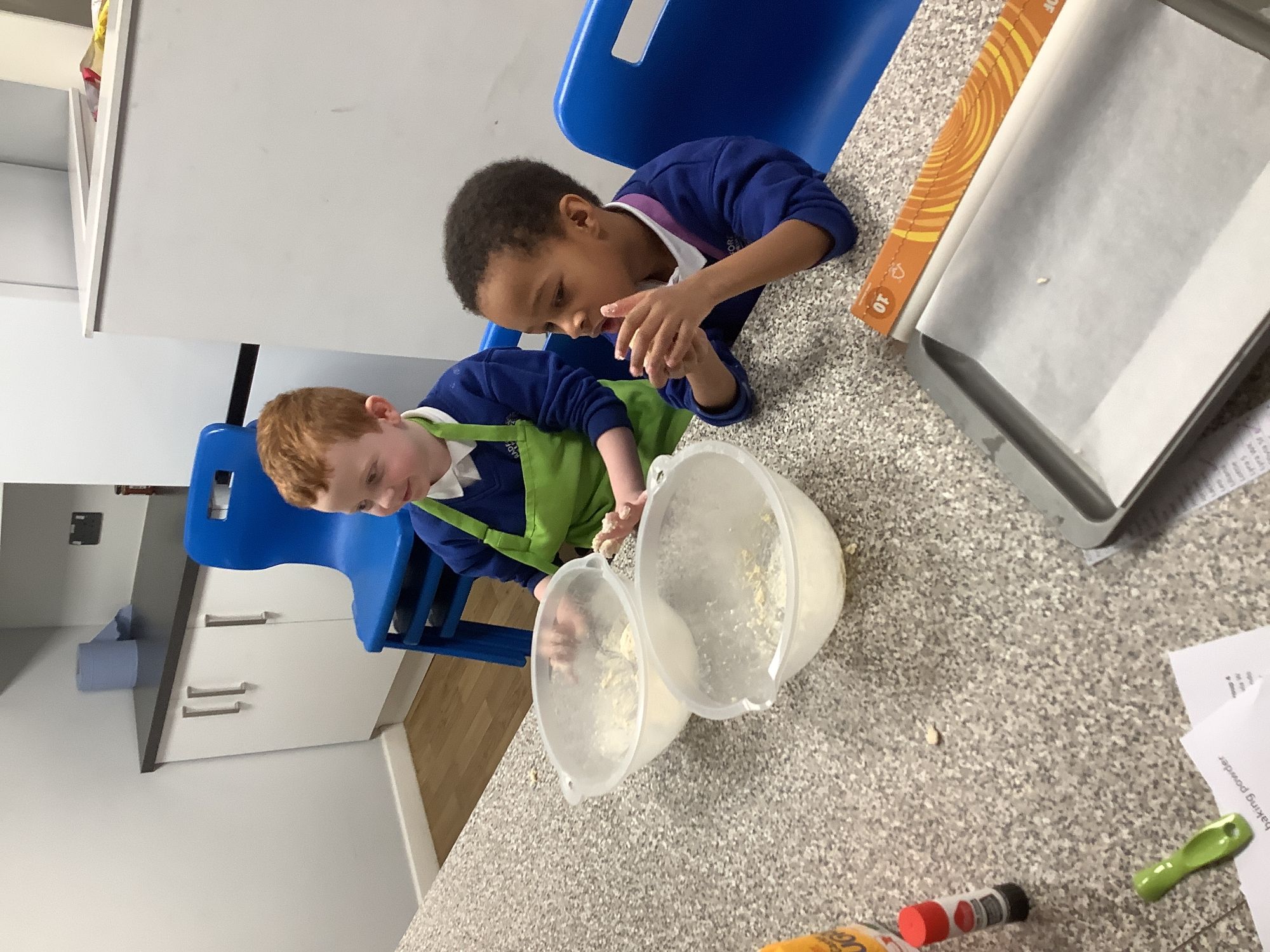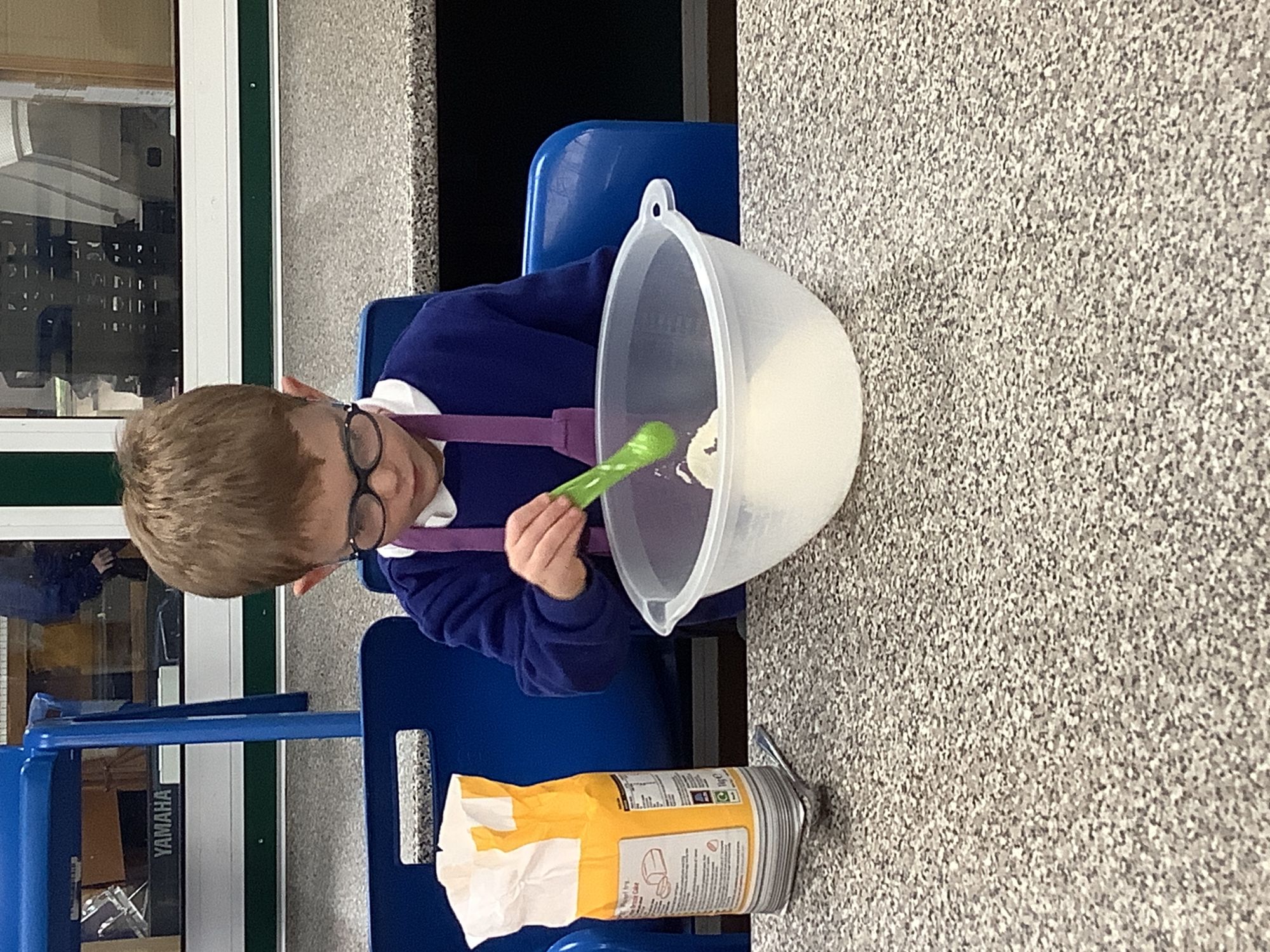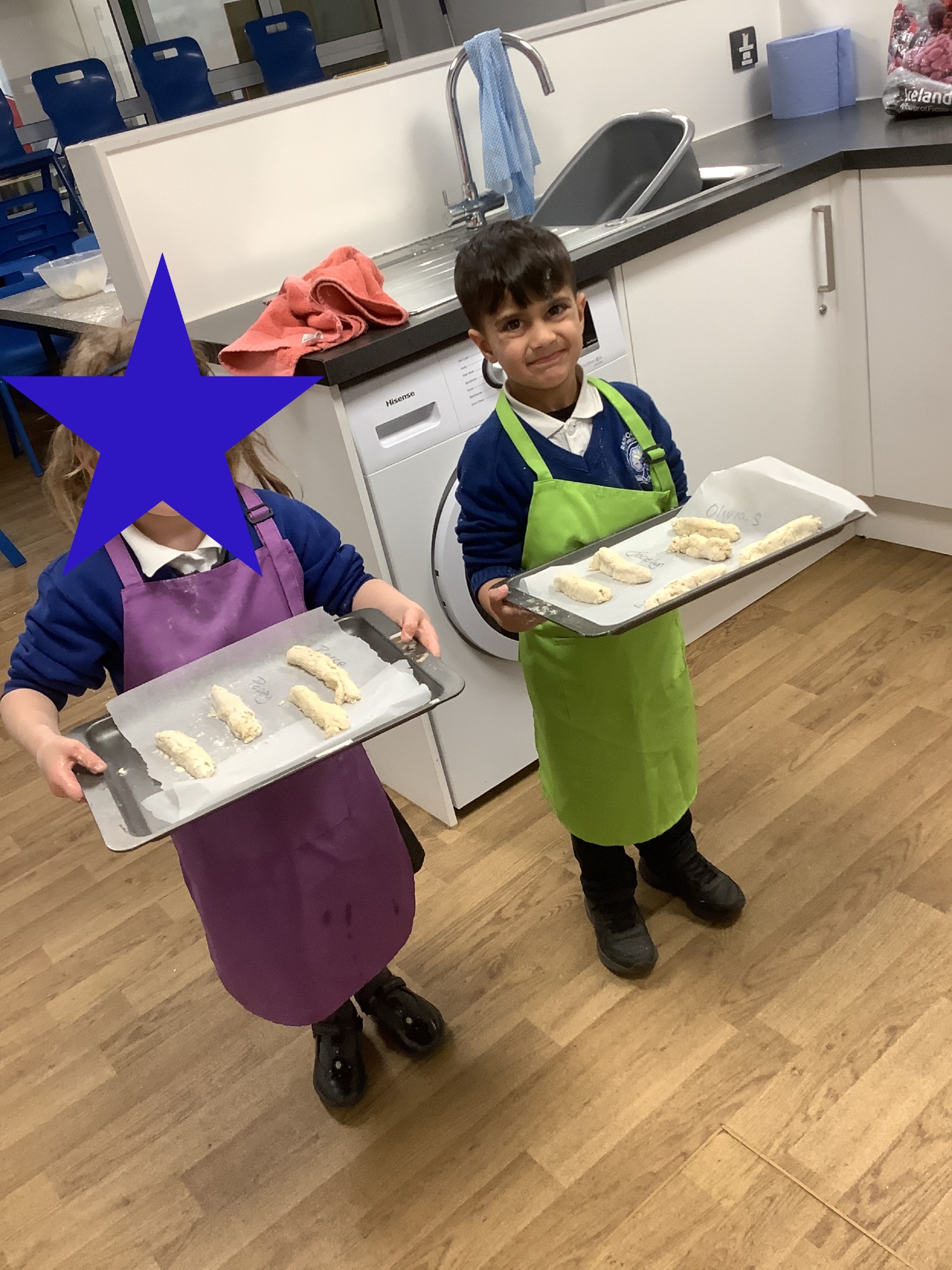 Having heard the story of the Little Red Hen, we decided to make our own bread. We worked individually to measure each of the ingredients needed. We mixed the dough and then rolled out our breadsticks. After we cooked them, we took them home to share with our families.