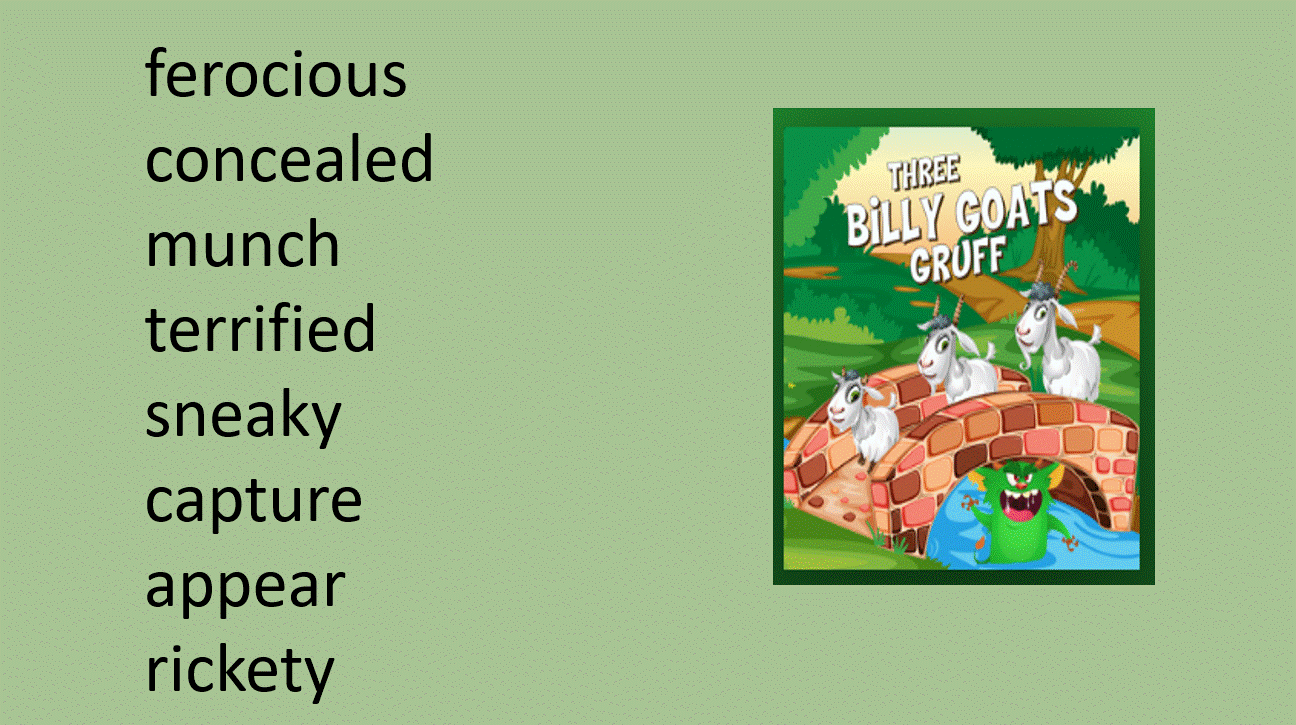 Each week, we either read a story, hear a traditional tale, or watch an animation. We then learn eight challenging words associated with that story. We discover the meaning of each word and create an action to go with each word. We repeat these every day to help us learn new words.
