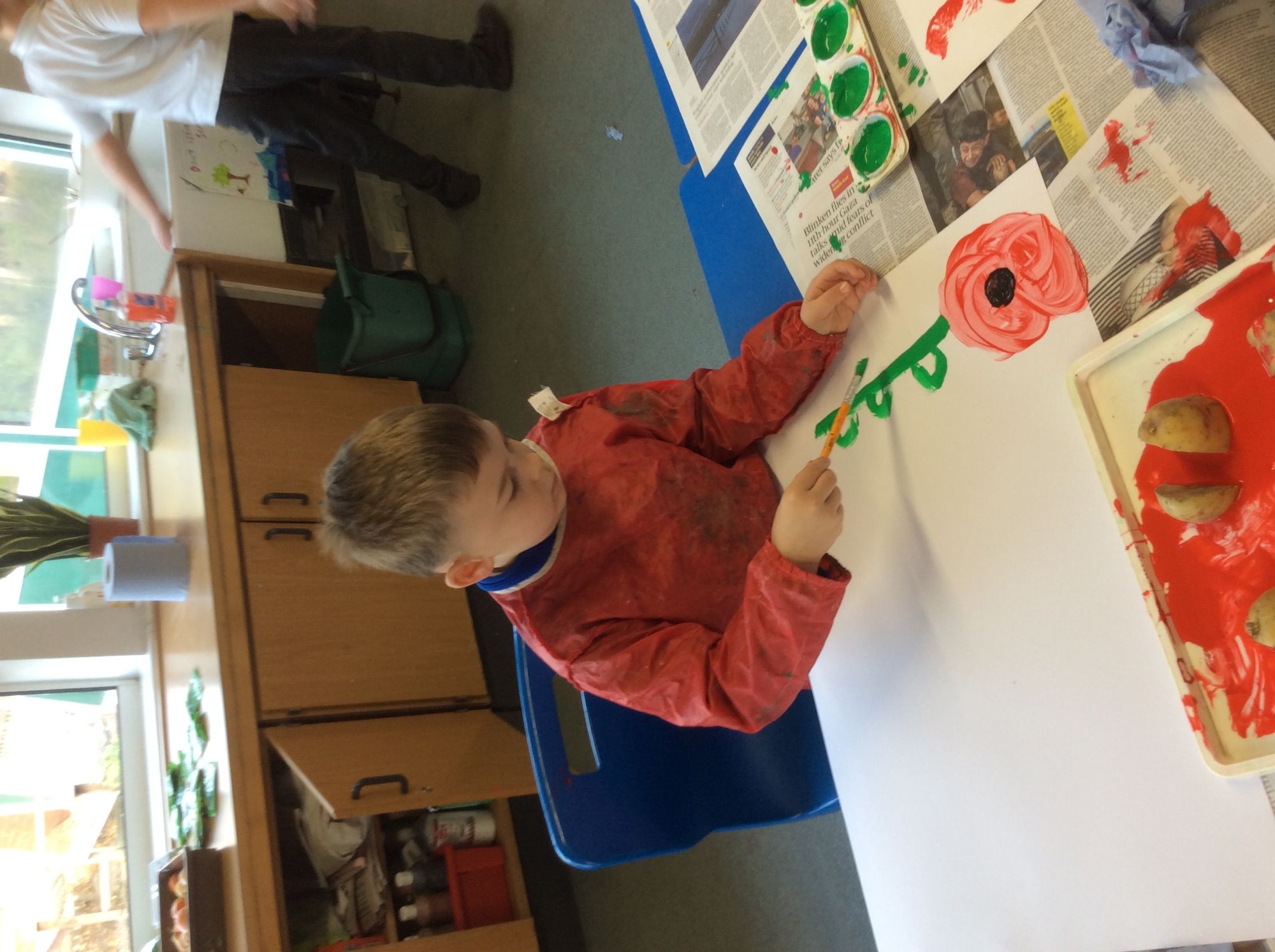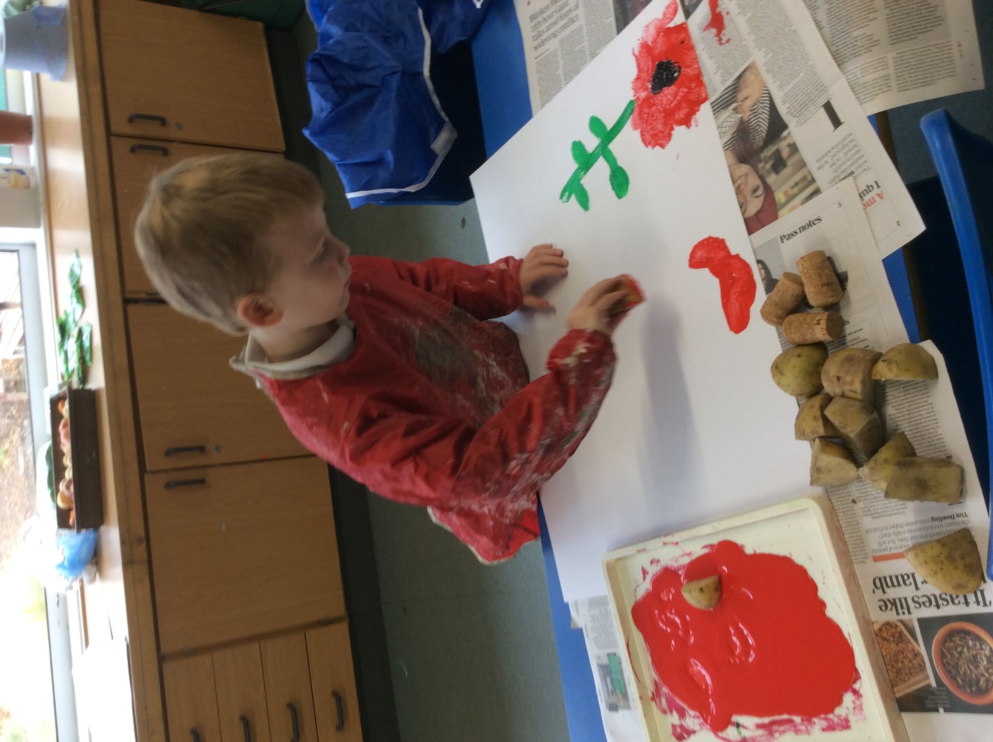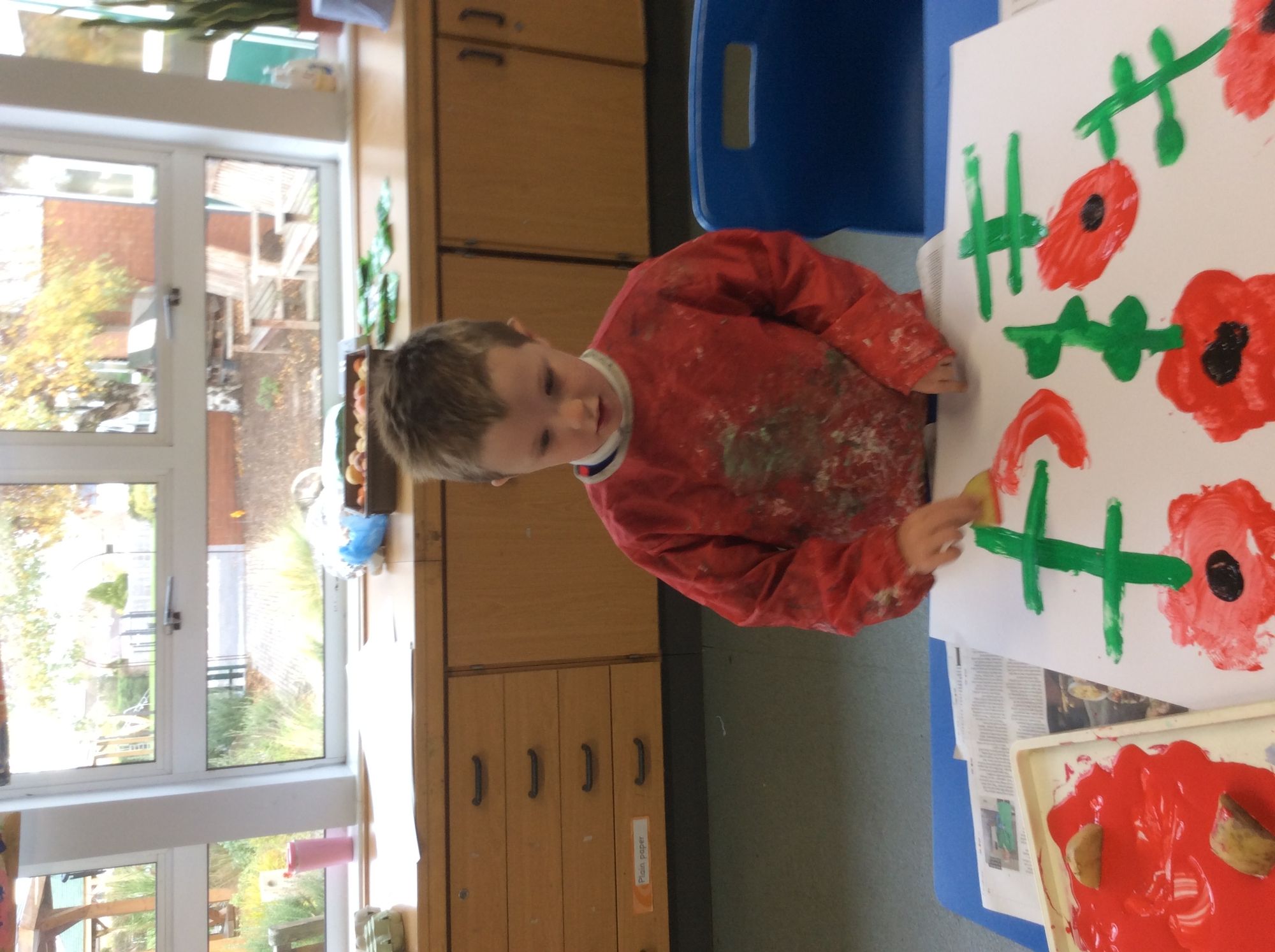 Ready for Remembrance Day we painted poppies and thought about all the people who sacrificed their lives for our country in the wars.