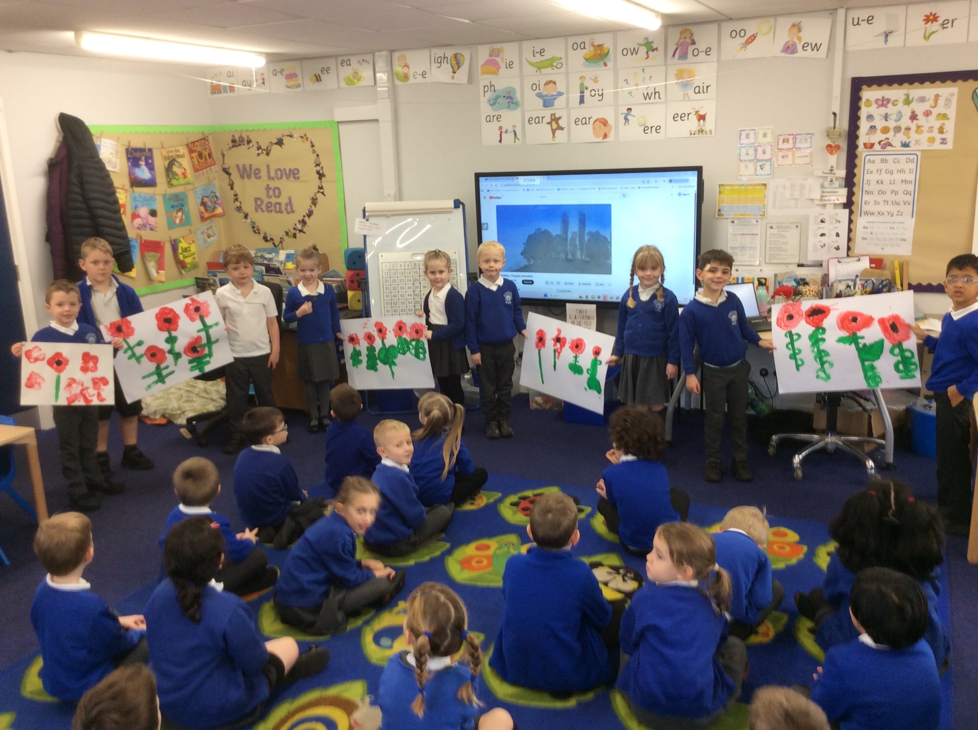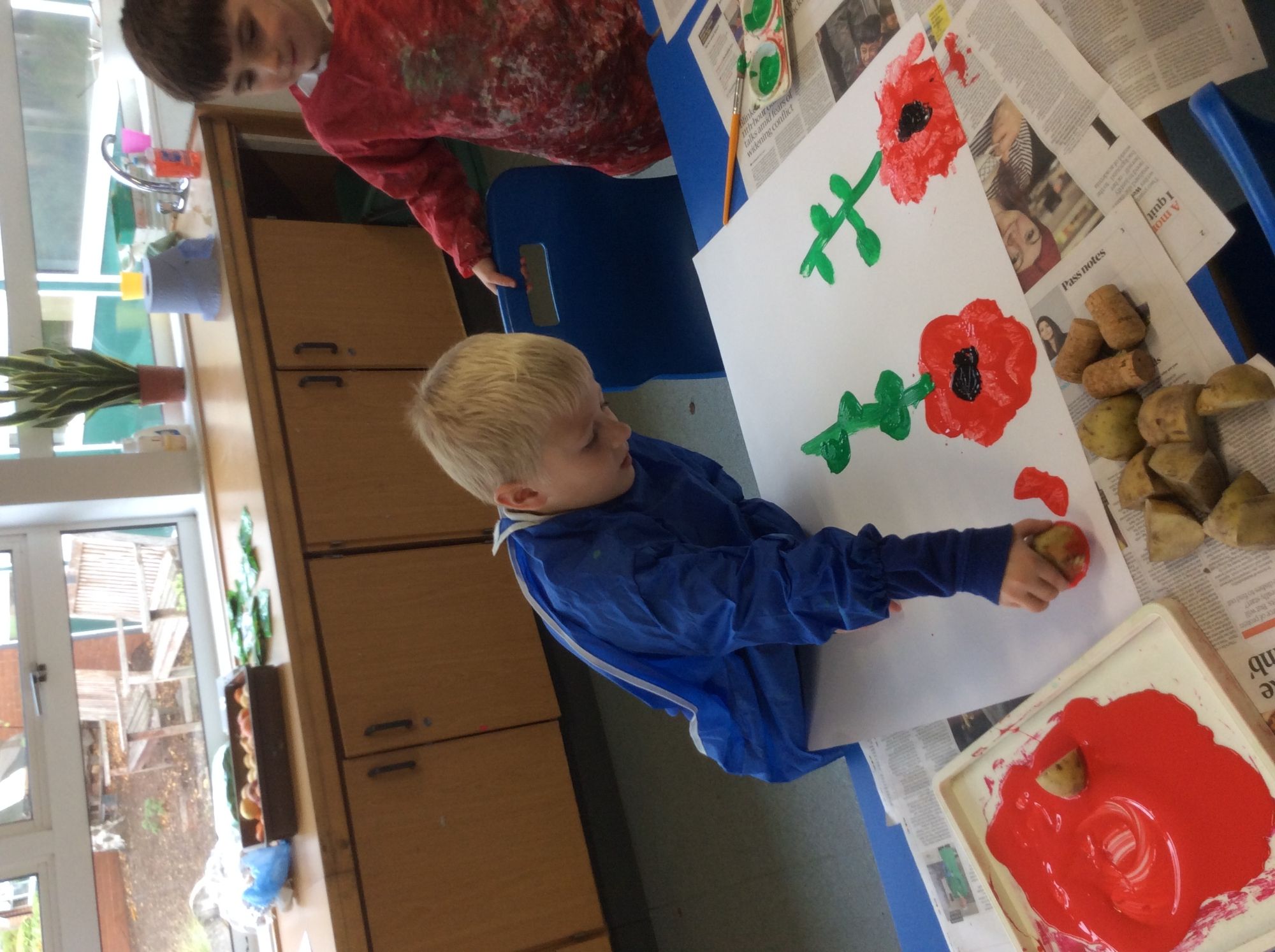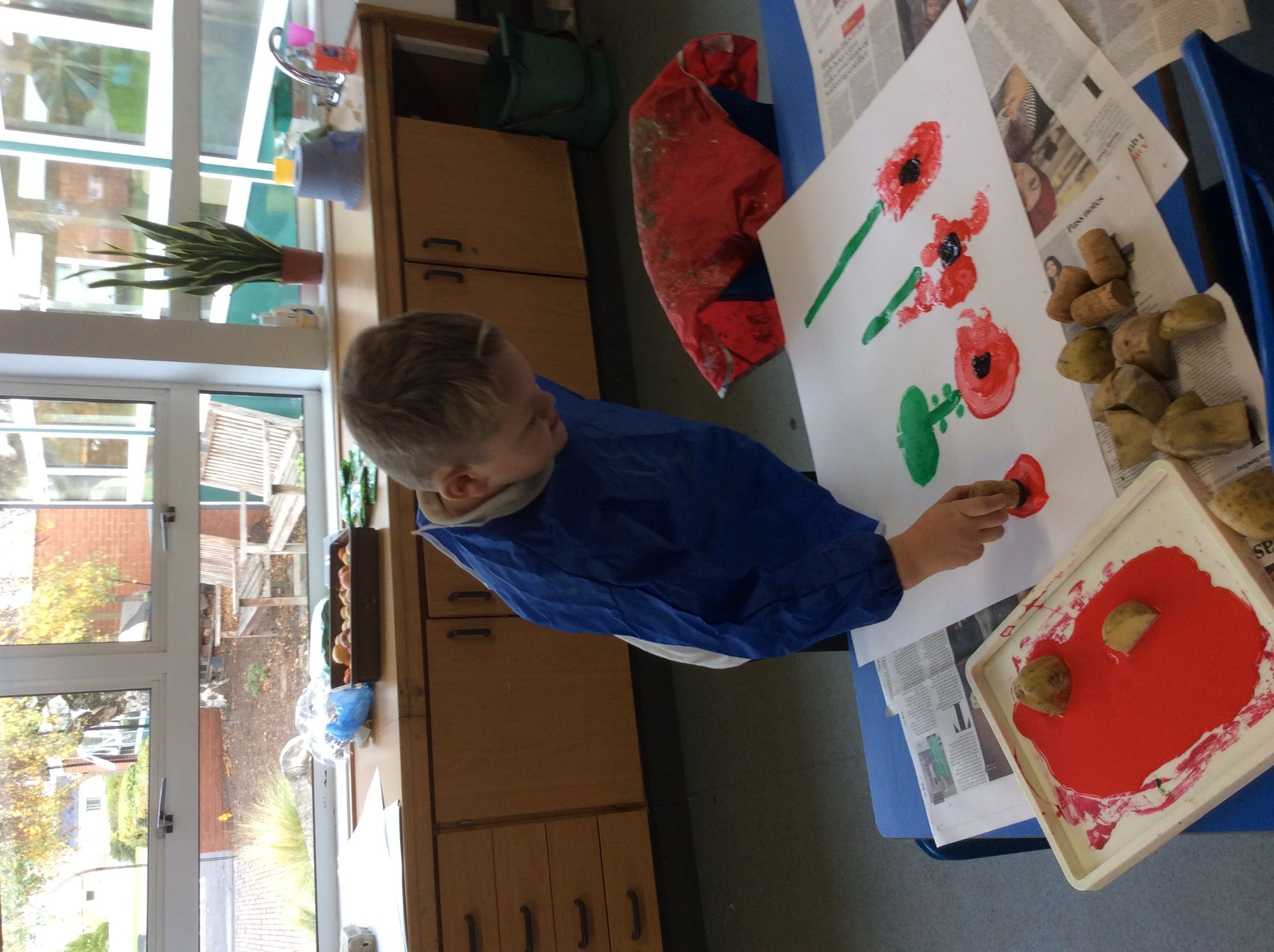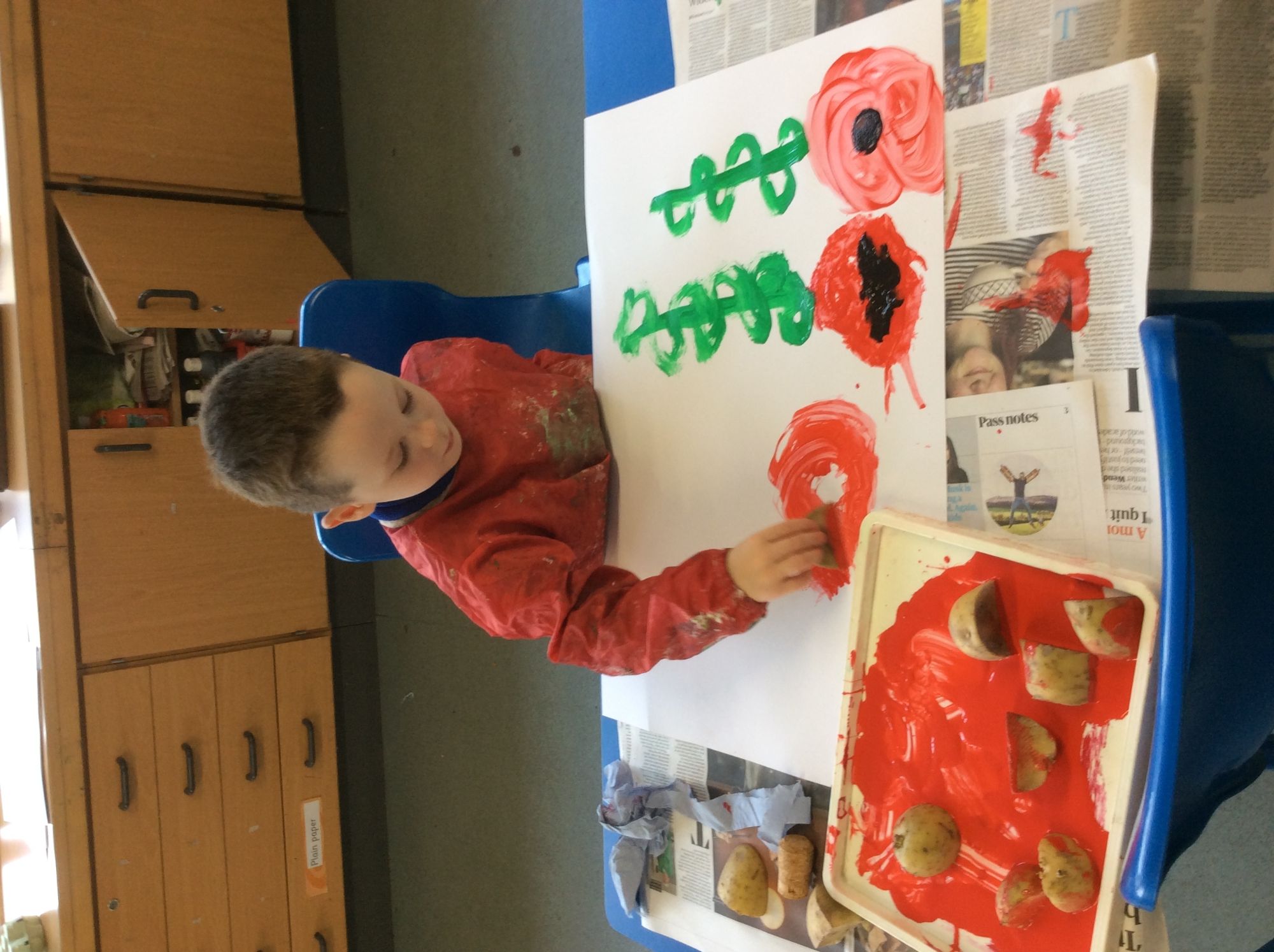 Ready for Remembrance Day we painted poppies and thought about all the people who sacrificed their lives for our country in the wars.