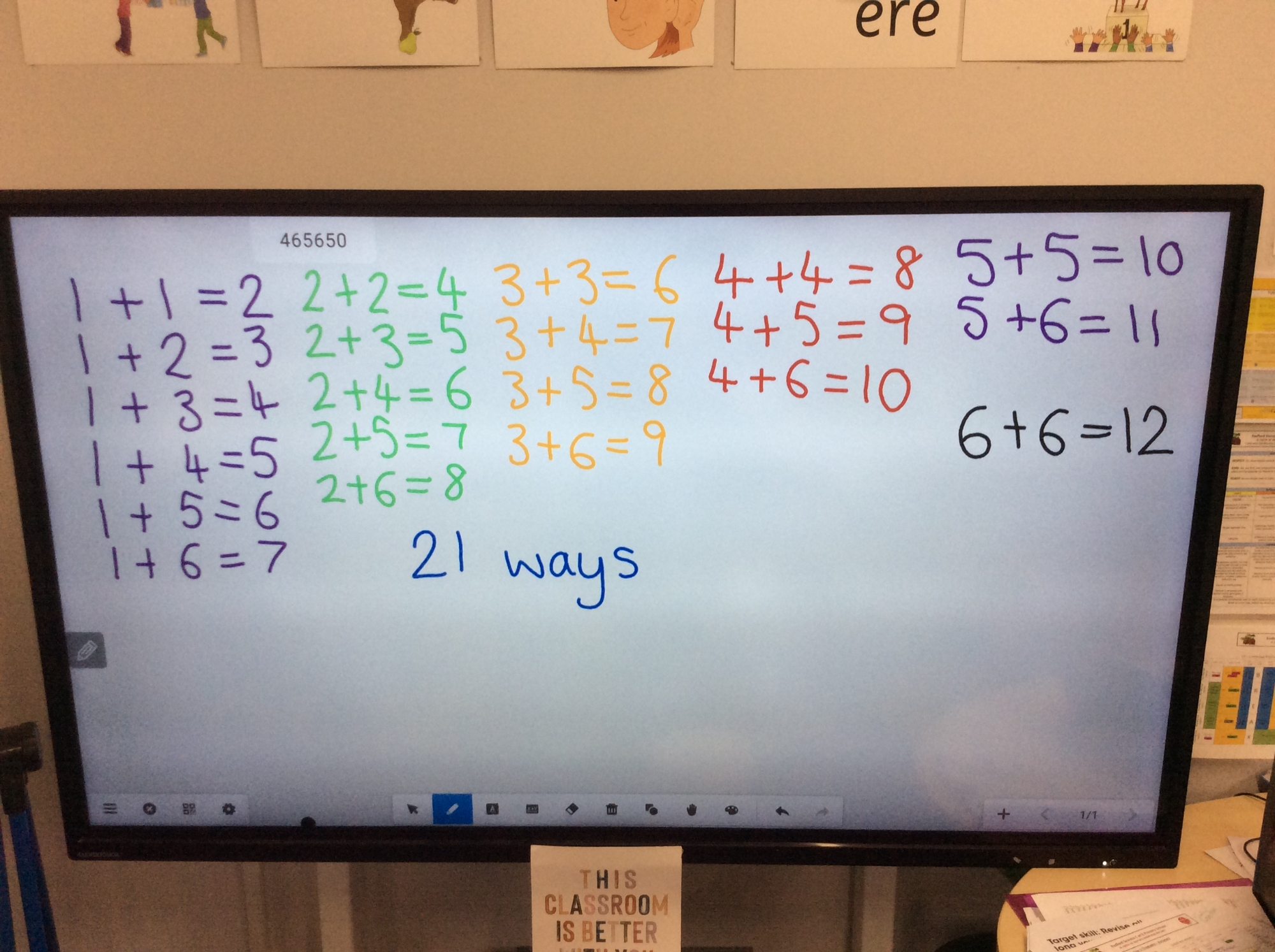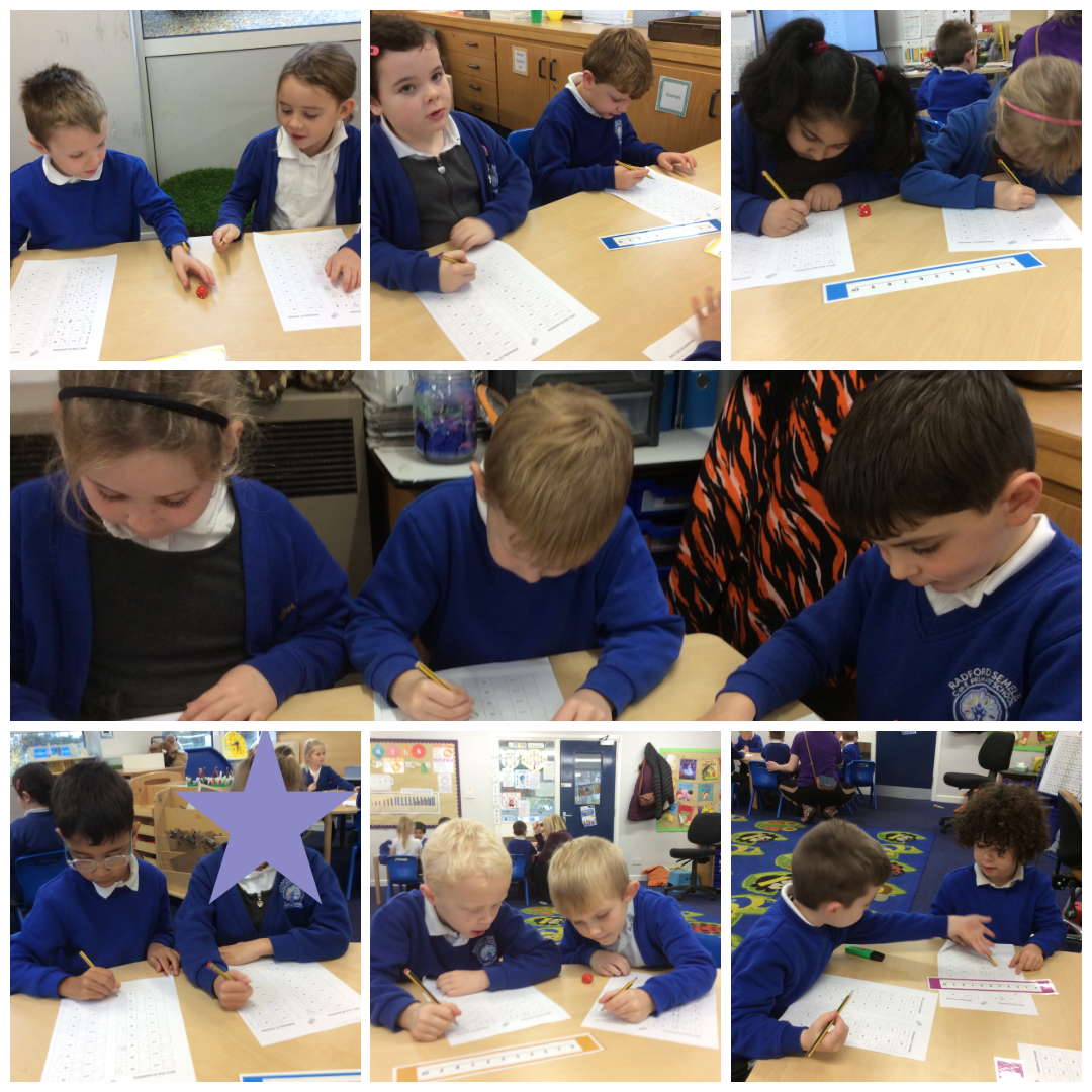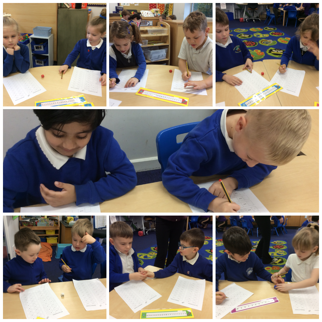 We worked in pairs to try to find all the possibilities of the total of two dice. We worked hard together and then brought all our ideas together as a class, working systematically, to find all 21 solutions. The lowest total we found was 1 and 1 = 2, and the largest total was 6 and 6 = 12.
