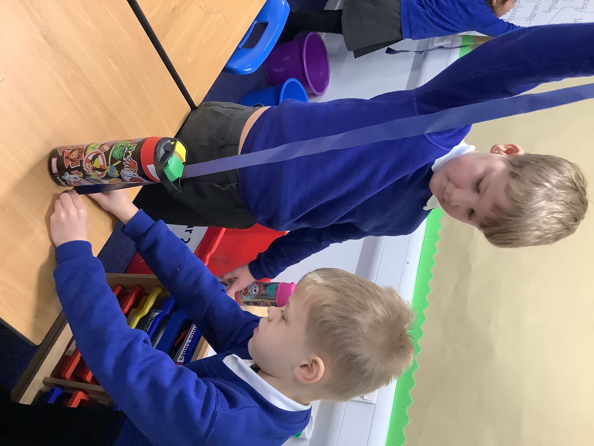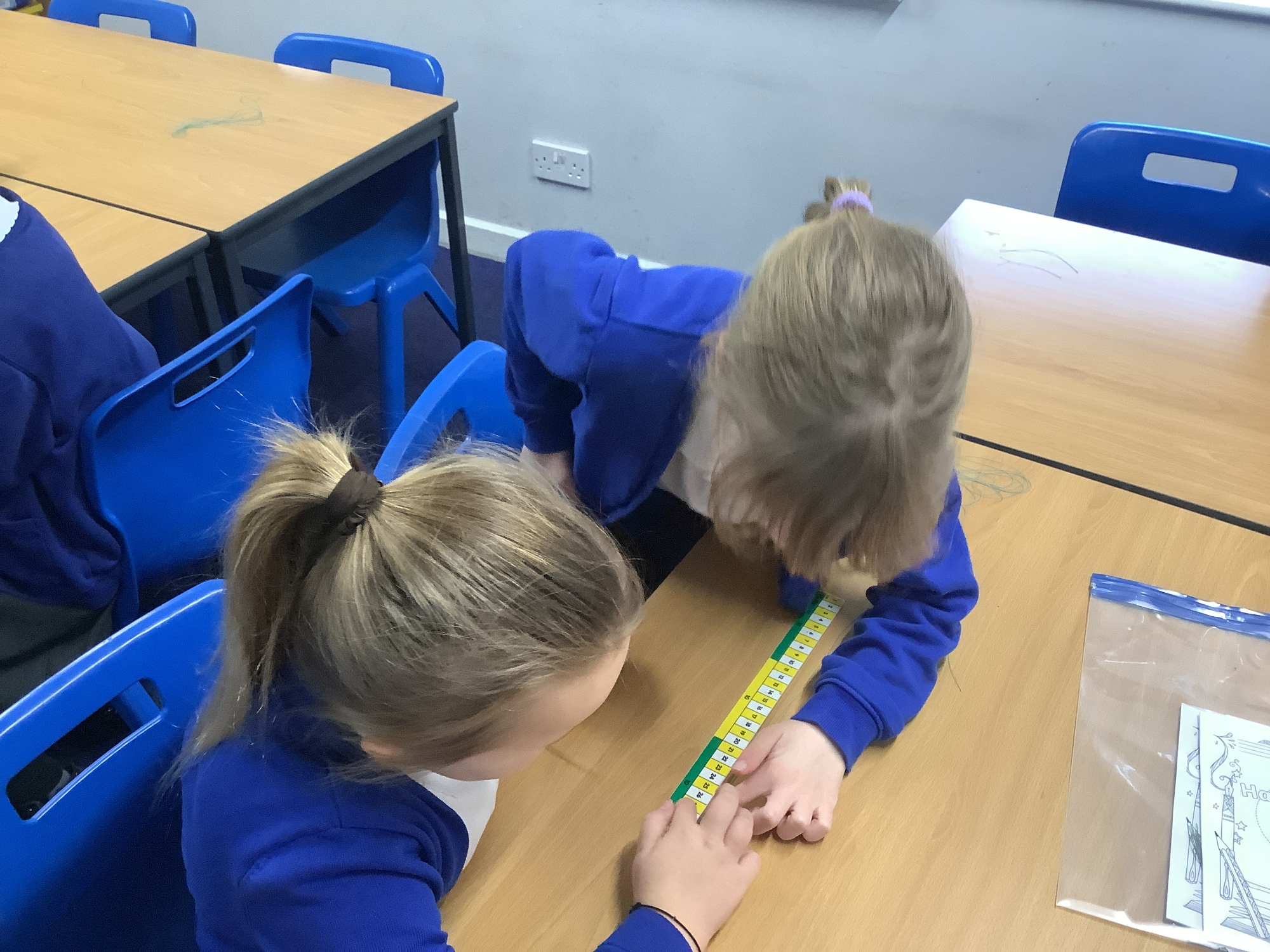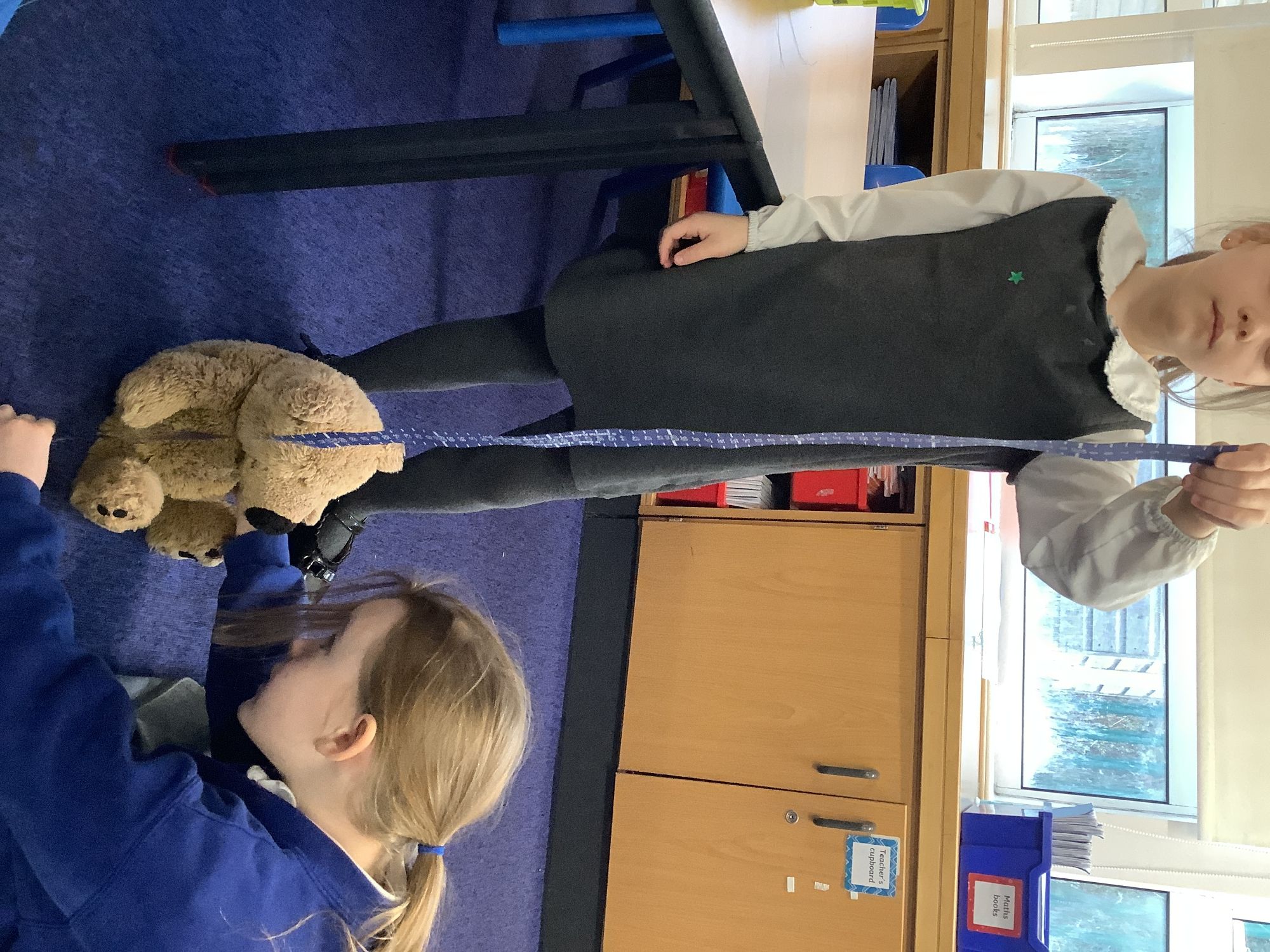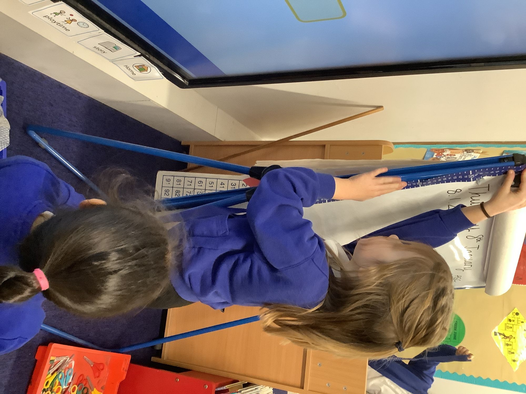 The children have been using metre sticks, tape measures and rulers to measure lengths/heights in centimetres and metres. They have also learnt how to measure to the nearest metre or nearest centimetre.