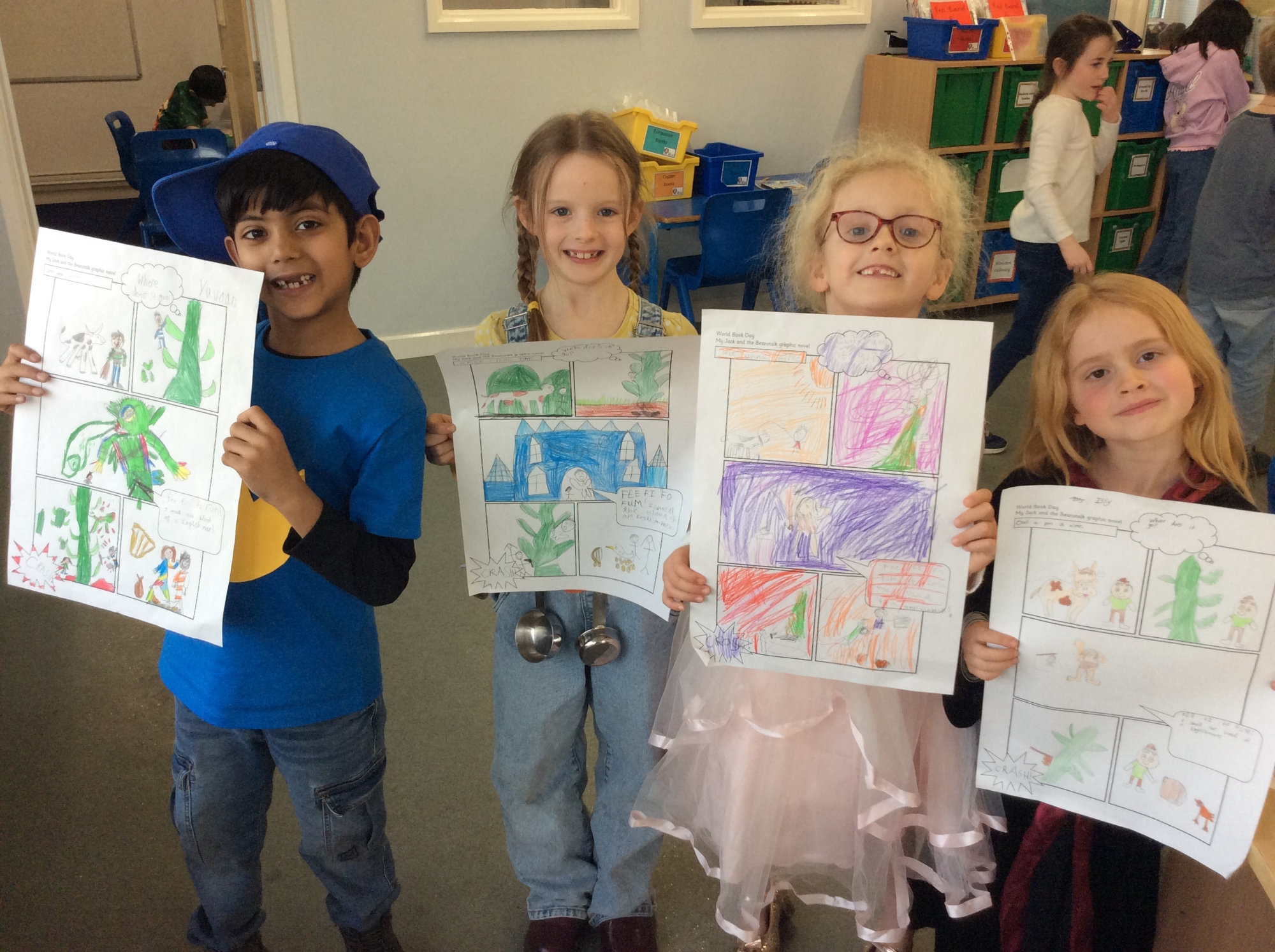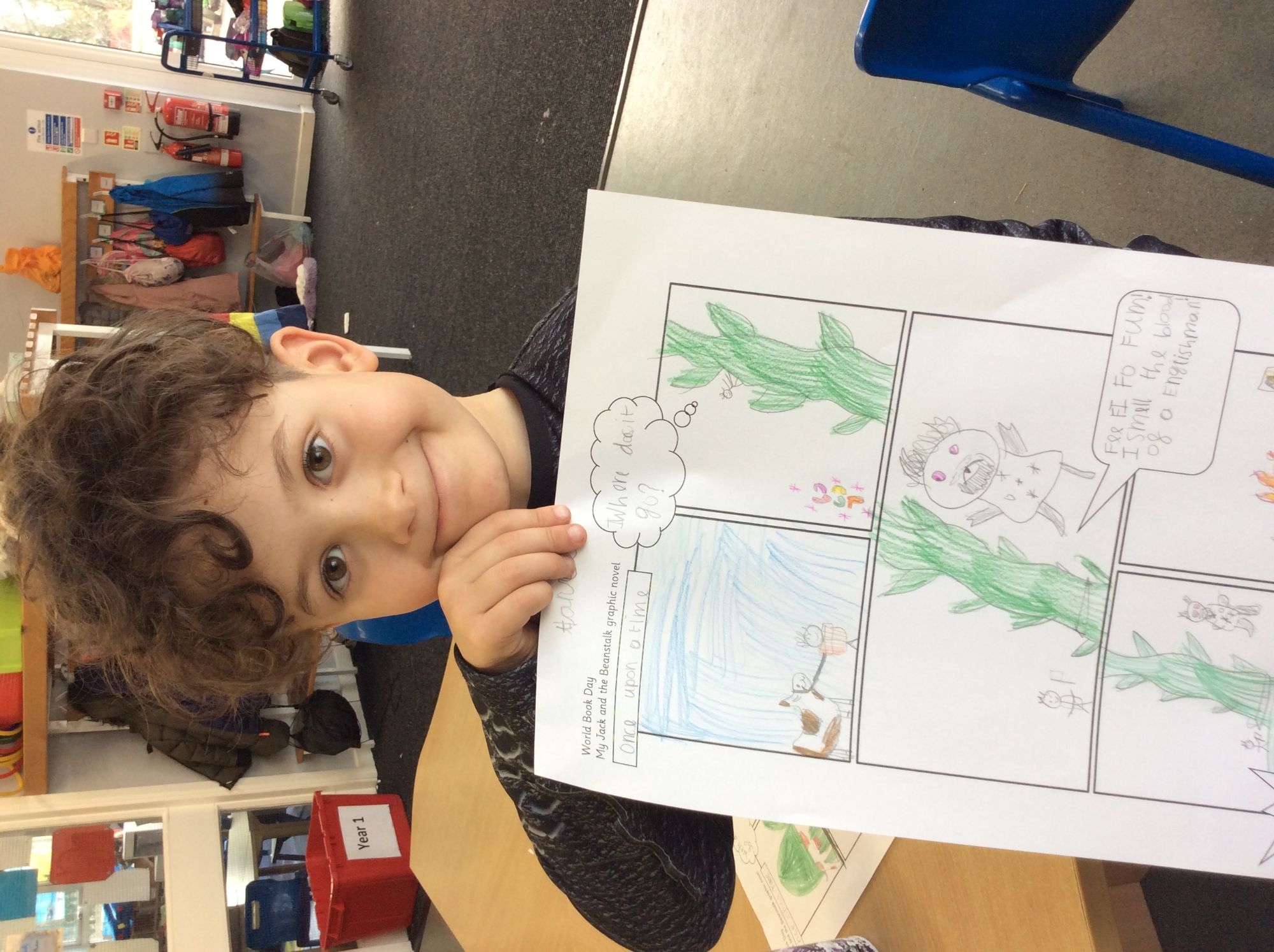 We had a wonderful time celebrating World Book Day this week. The children looked fantastic dressed up as their favourite characters and had lots of fun taking part in an orienteering activity to discover which fairytale characters had stolen the Gingerbread Man. In class we shared the story of 'Jack and the Beanstalk' and the children enjoyed retelling the story in the style of a graphic novel. We then had a look at the story of 'Jack and the Baked Beanstalk' which was a fun twist on the original.