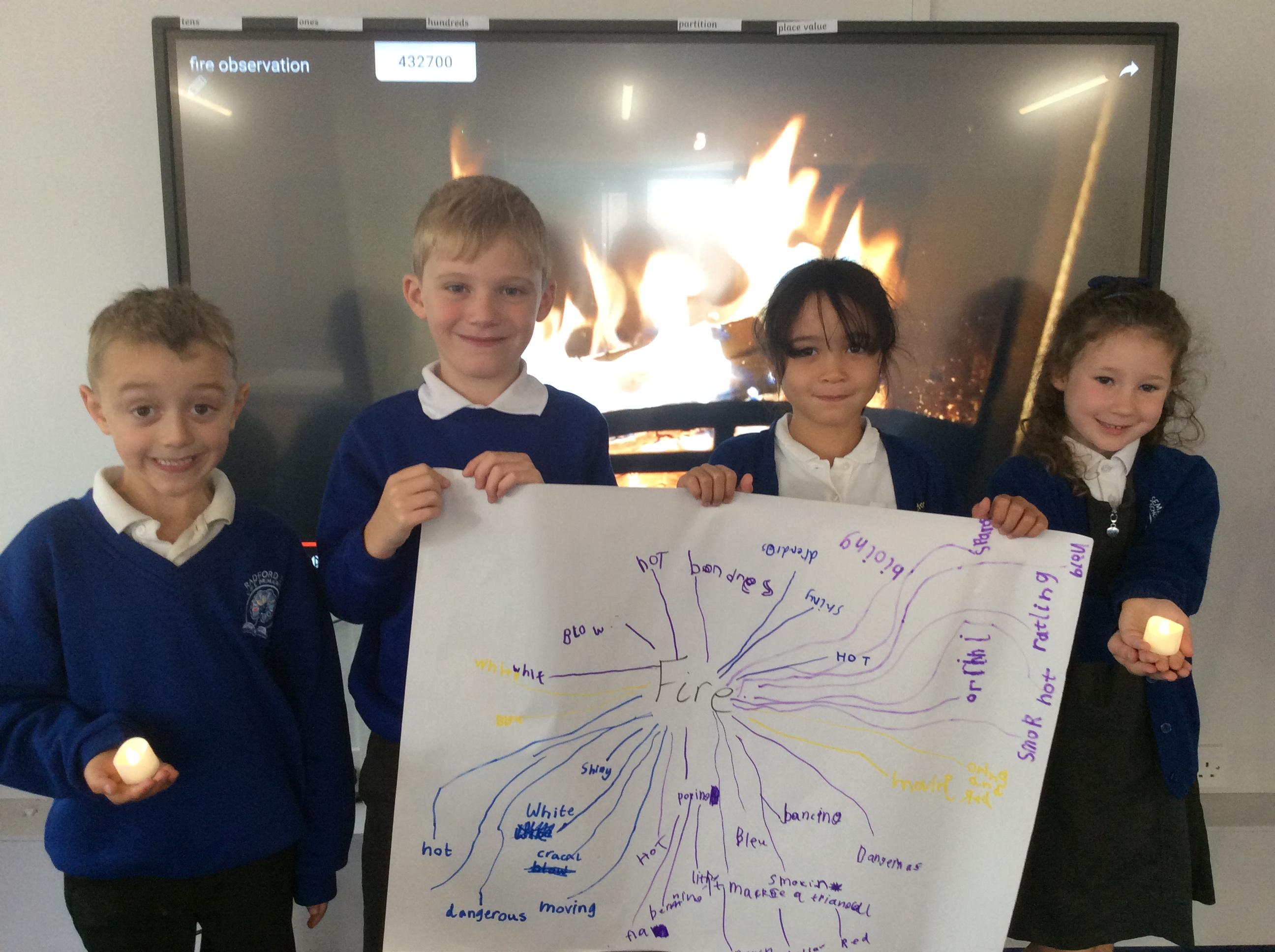 Year 2 have been starting off our theme of Fire and Light by using our senses to come up with adjectives and verbs to describe fire!