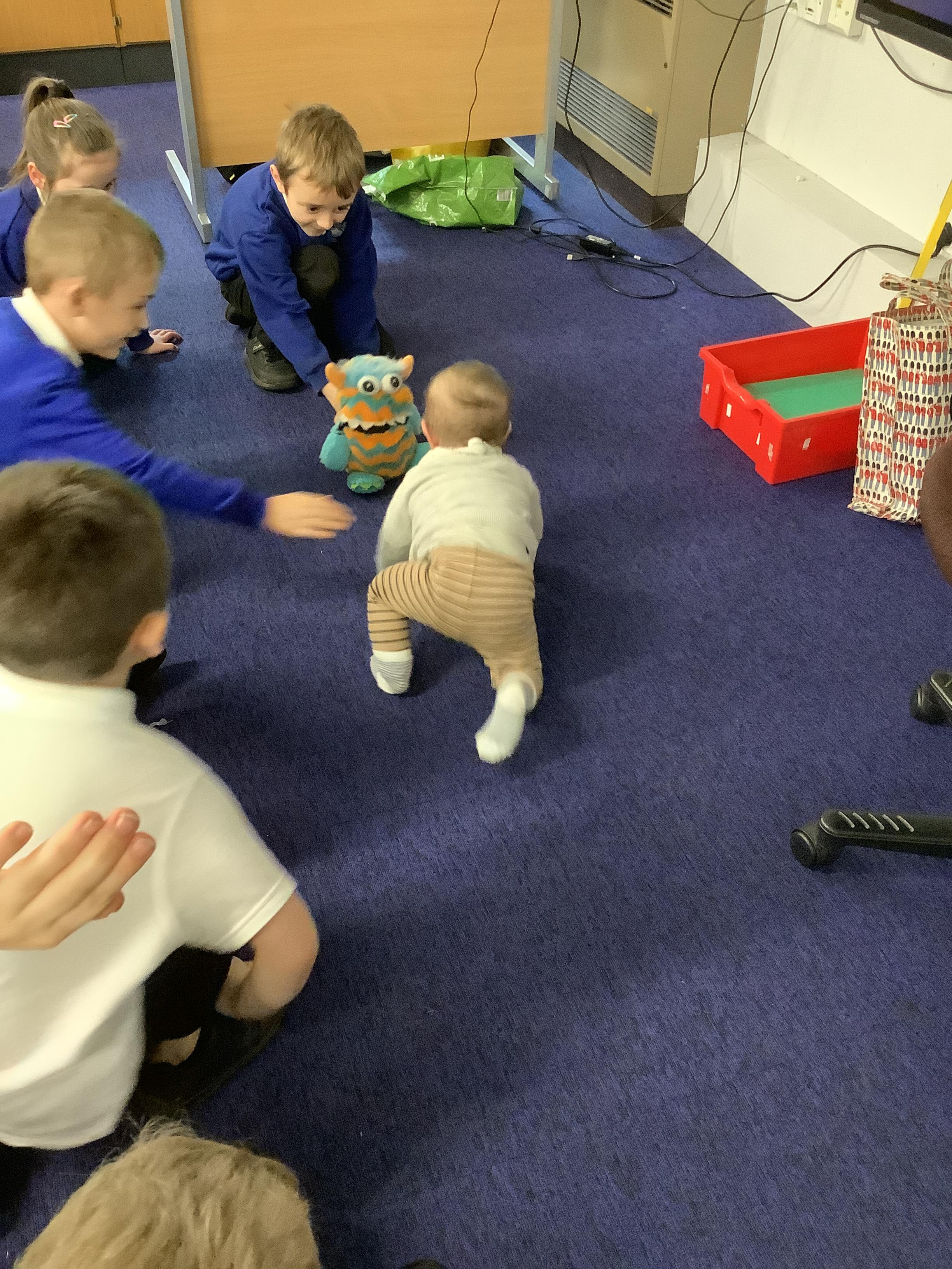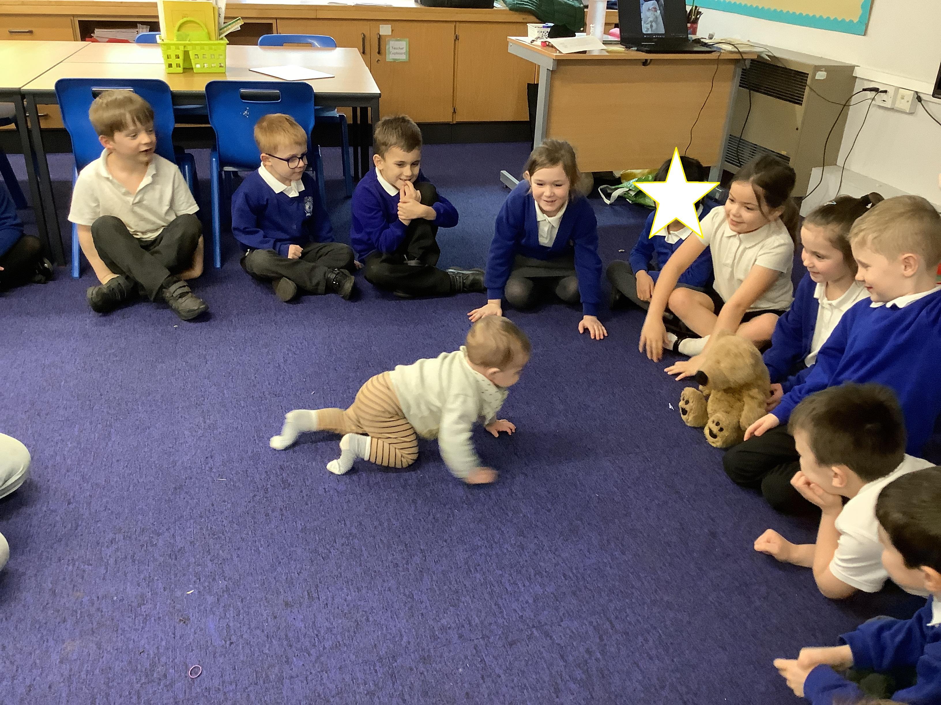 Year 2 had their final visit from Miss Conroy and baby Ted today. The children were amazed at the changes they could see since Ted's last visit, from walking and beginning to talk to growing three teeth and much more hair!