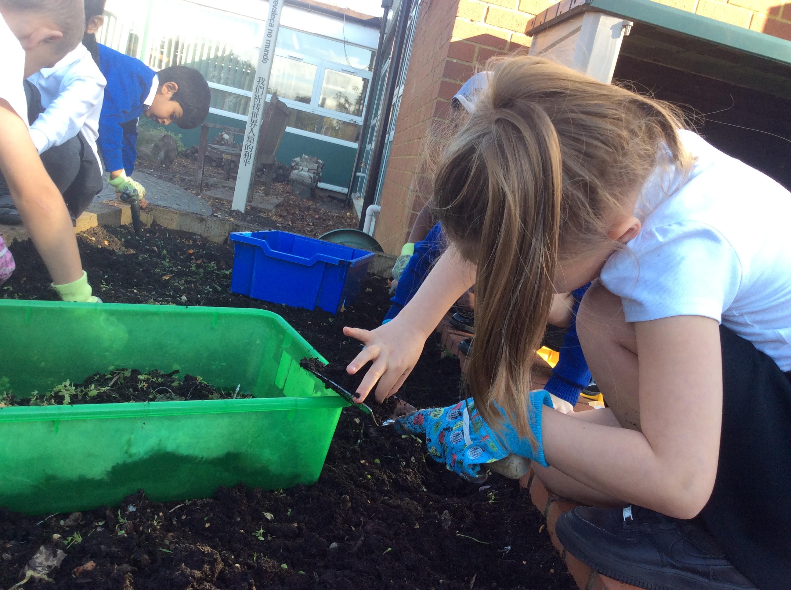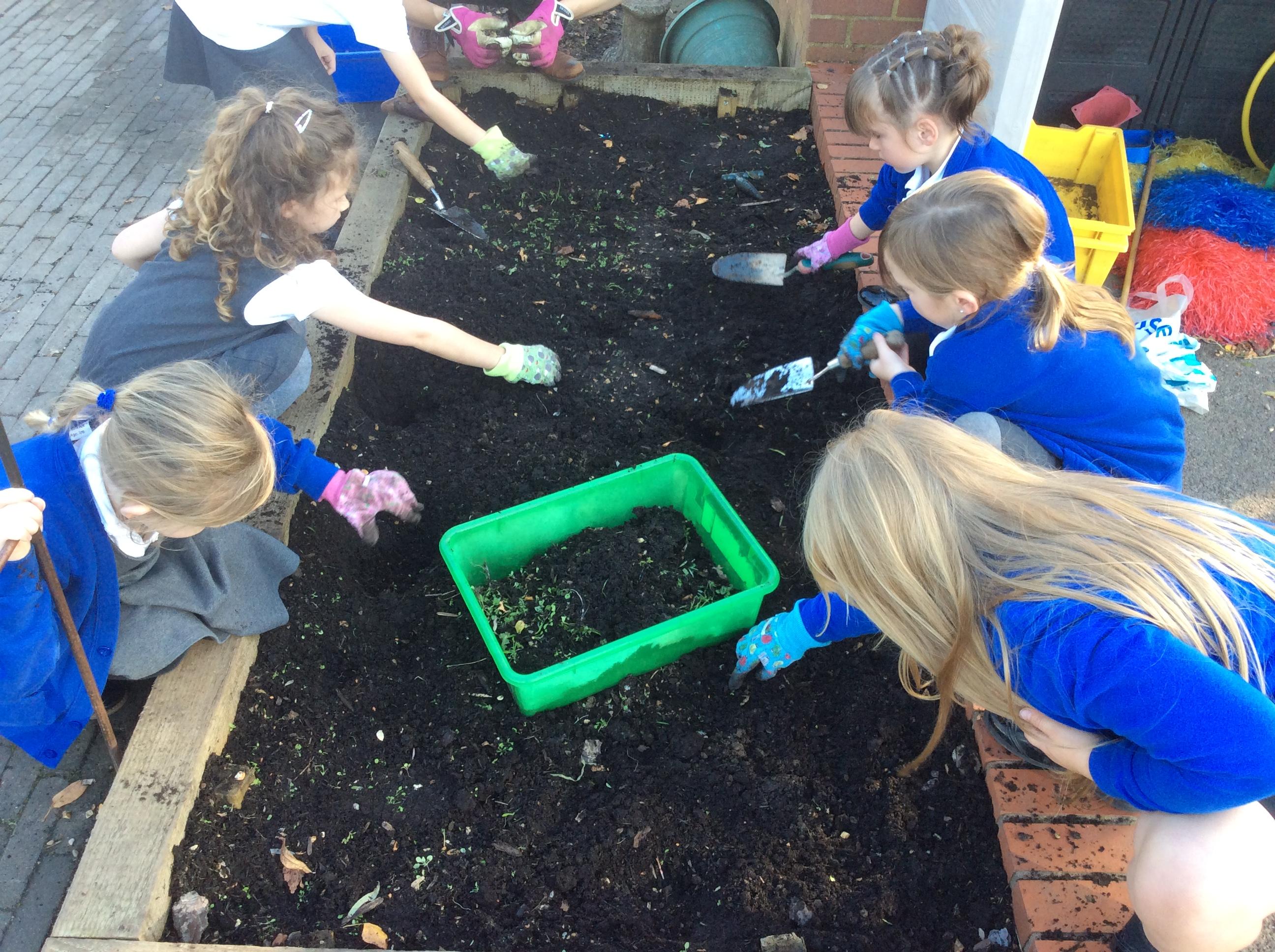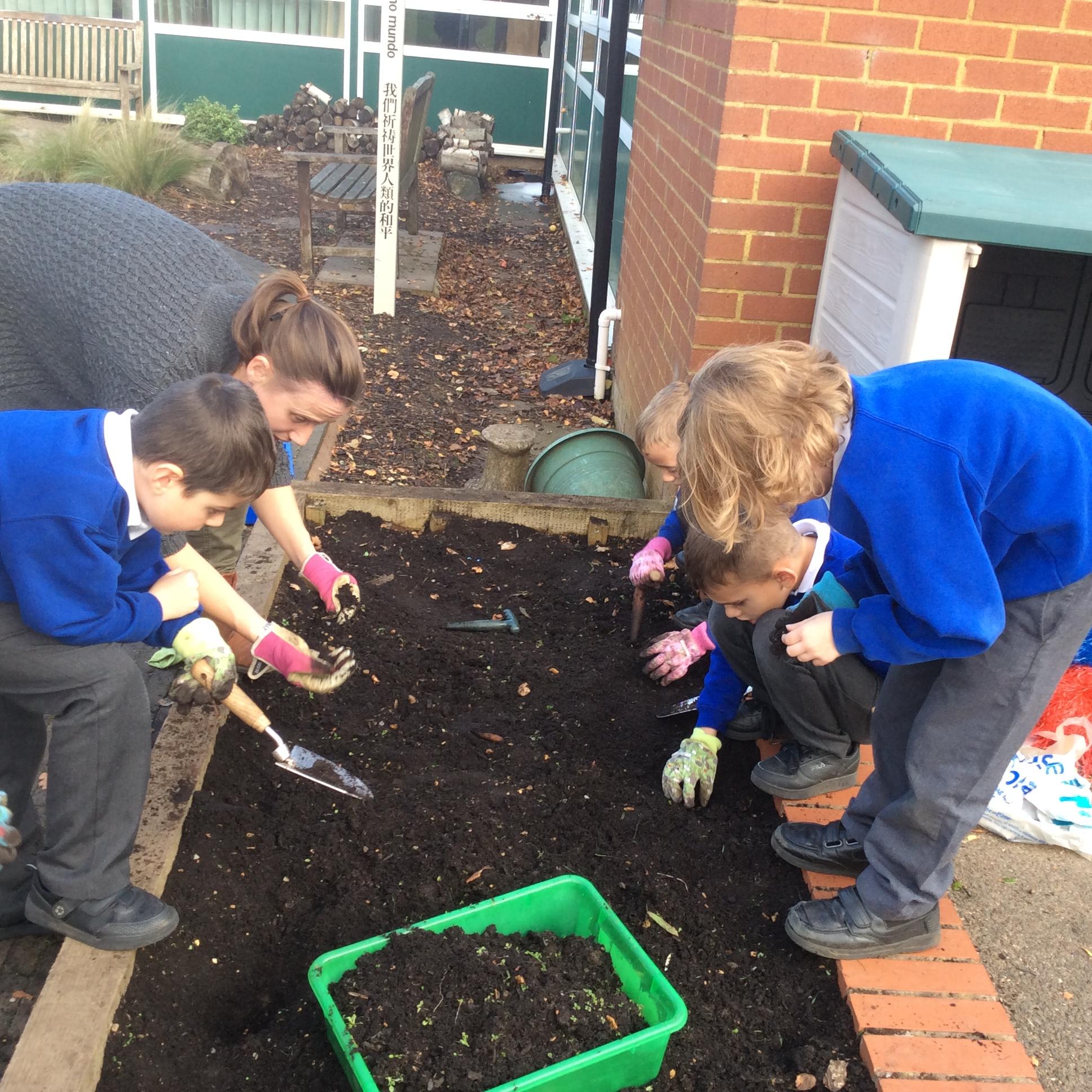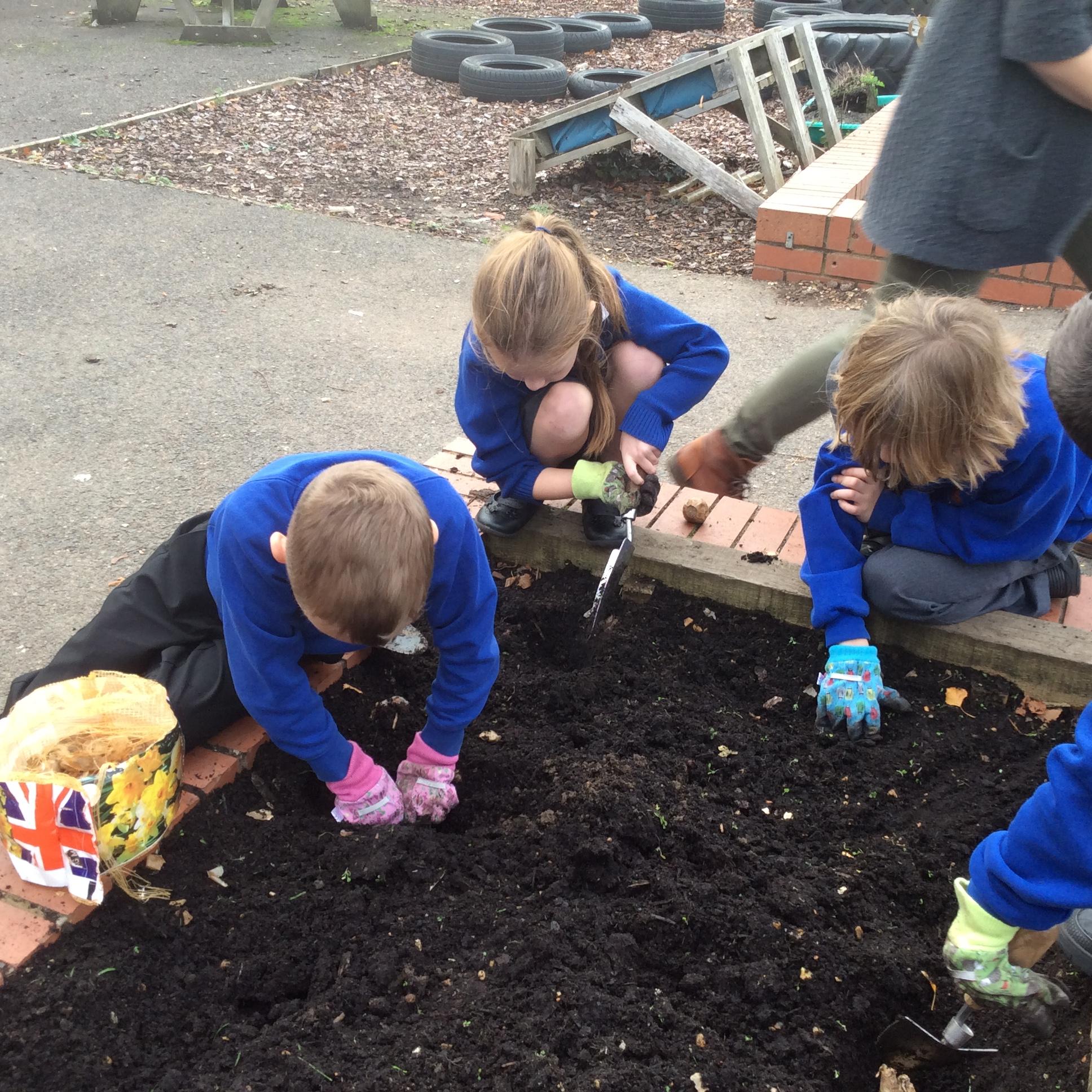 As we move into Autumn, the children have been weeding the flower beds and planting bulbs. They looked closely at the bulbs and compared them to a range of different seeds we had collected. We're looking forward to seeing our bulbs grow and flower during Spring.