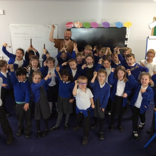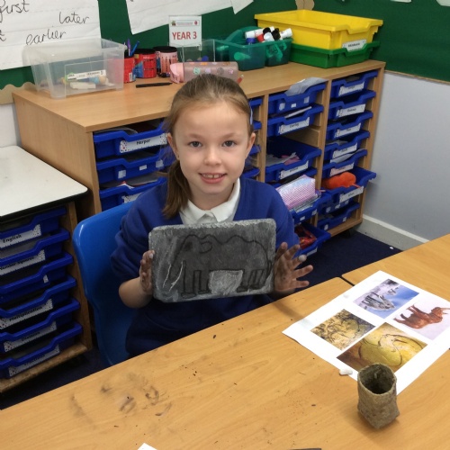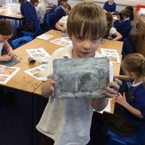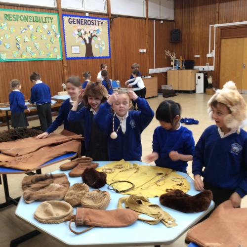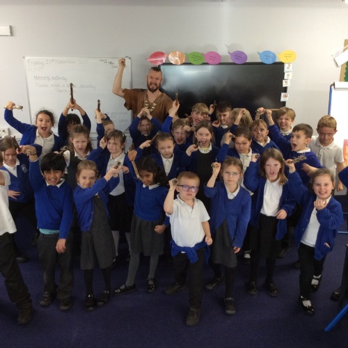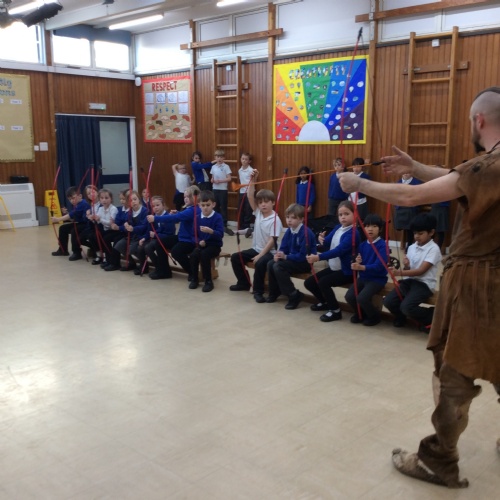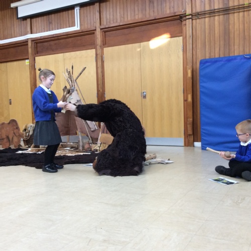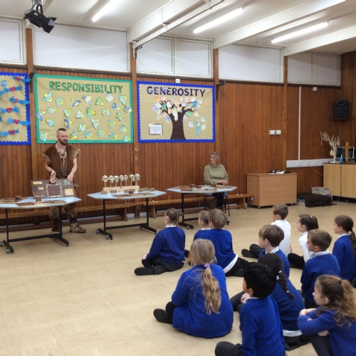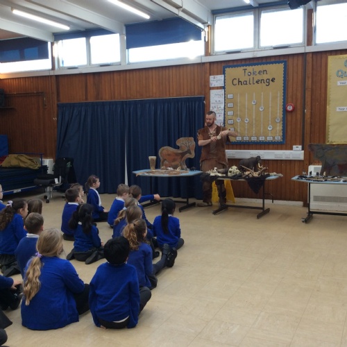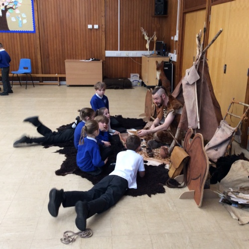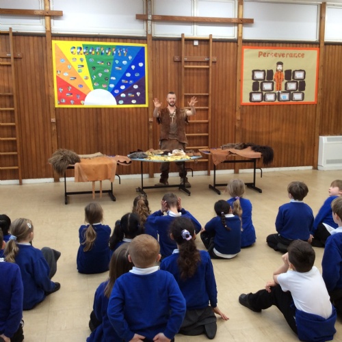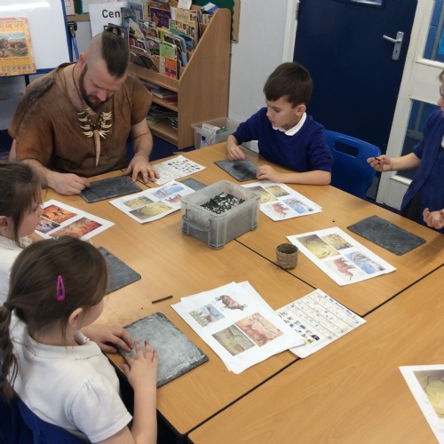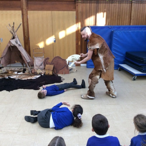 On Friday, pupils were visited by The History Guy, who lead the children through a day in the Stone Age. Pupils learnt about the development of the early humans, handled artefacts and clothing from the Stone Age, created their own cave paintings using chalk and charcoal, and built their own Stone Age tools.