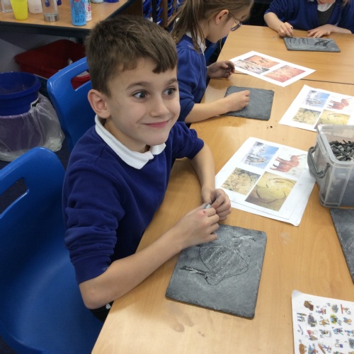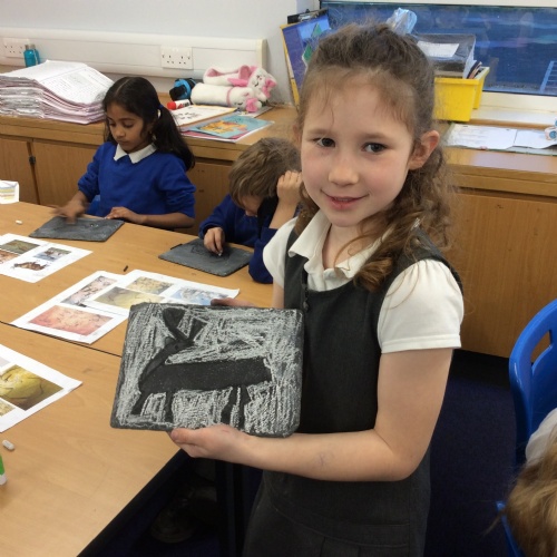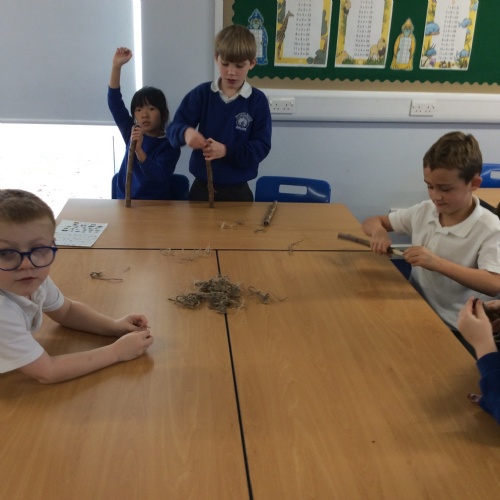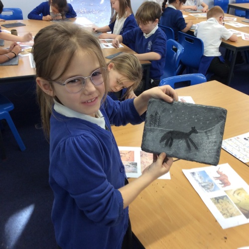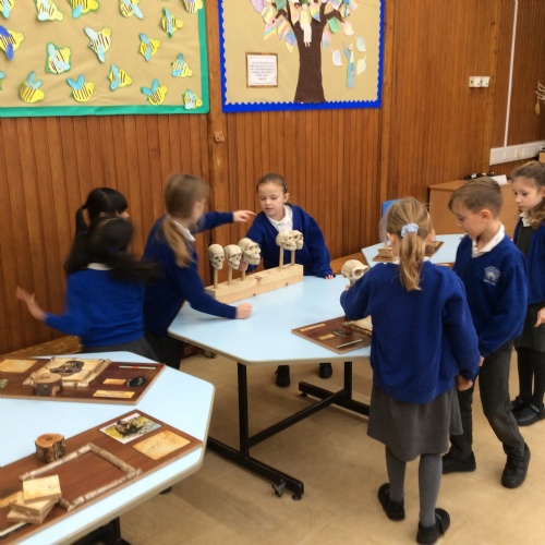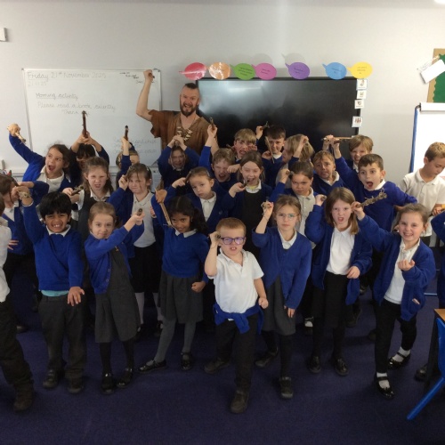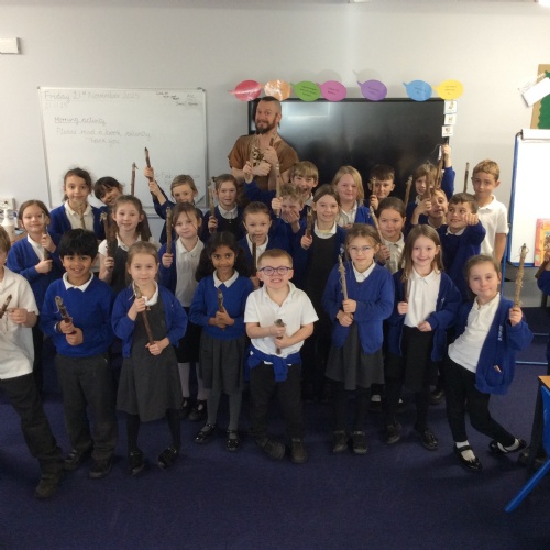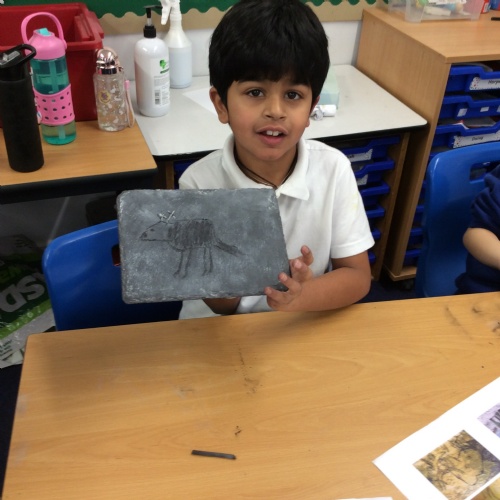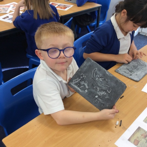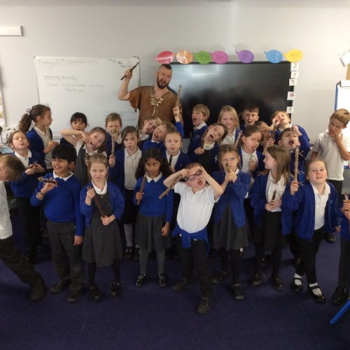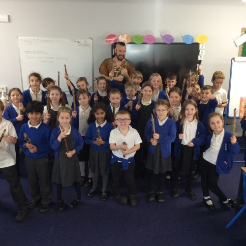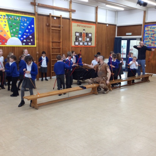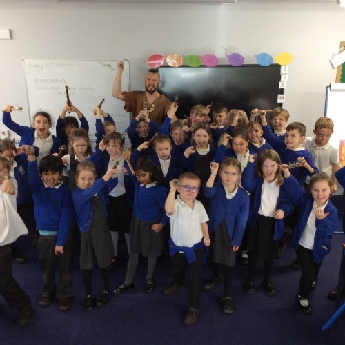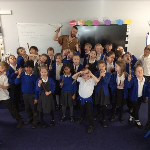 On Friday, pupils were visited by The History Guy, who lead the children through a day in the Stone Age. Pupils learnt about the development of the early humans, handled artefacts and clothing from the Stone Age, created their own cave paintings using chalk and charcoal, and built their own Stone Age tools.