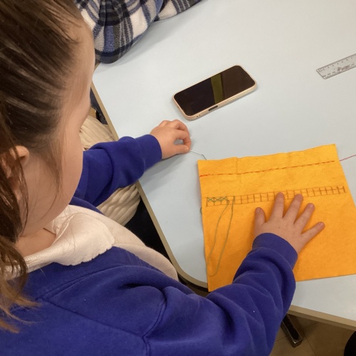 This week, Year 3 welcomed their parents and carers into school to help them develop their sewing skills! The children practised doing both a running stitch and a cross-stitch. This is so that they can create some bunting to promote taking care of the environment as part of their Rivers and Mountains theme.