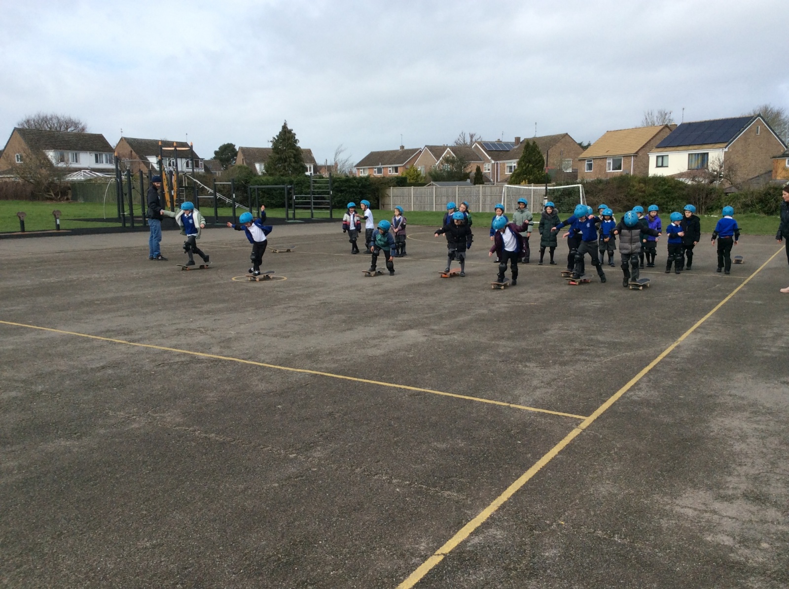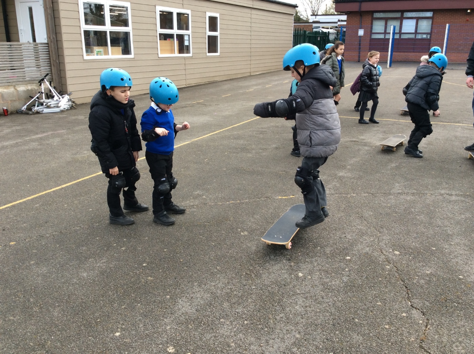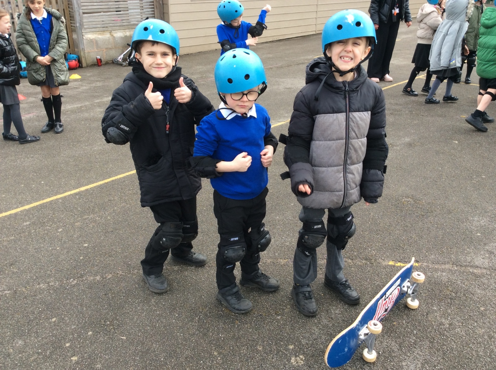 Pupils enjoyed something a bit different today... a skateboarding lesson! After learning how to correctly put on the safety gear, Year 3 pupils learnt out to perform jump tricks on the skateboards before having a go at skateboarding across the playground. Children showed great perseverance skills and a resilience when learning these new skills. Well done Year 3!