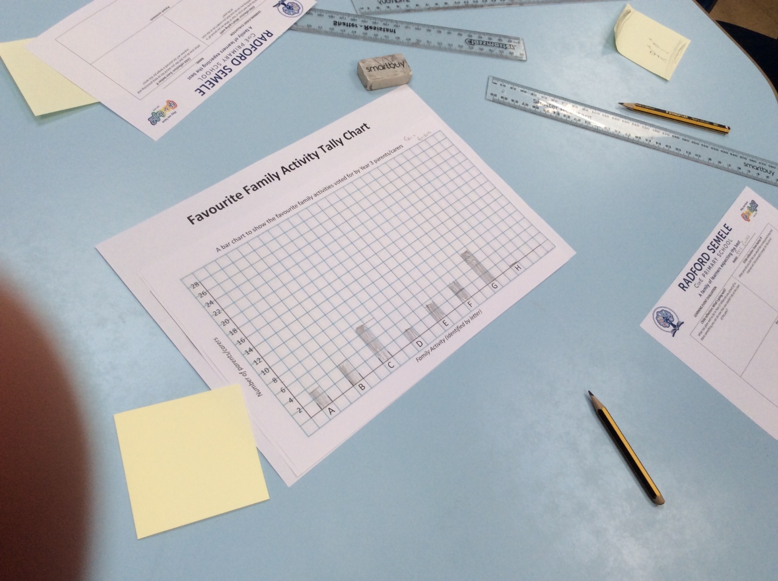 Year 3 invited their parents and carers to their final learning event of the year, where they collected live data about their parents' favourite family activities and presented the results on their own bar charts. Year 3 practised great tally chart skills today!