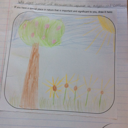 Year 3 undertook their first RE lesson of the year where the focus is why nature and the seasons are so important when talking about religious worldviews. We discussed how nature affects us and what our favourite places in nature are and why. Children drew these places in their books.