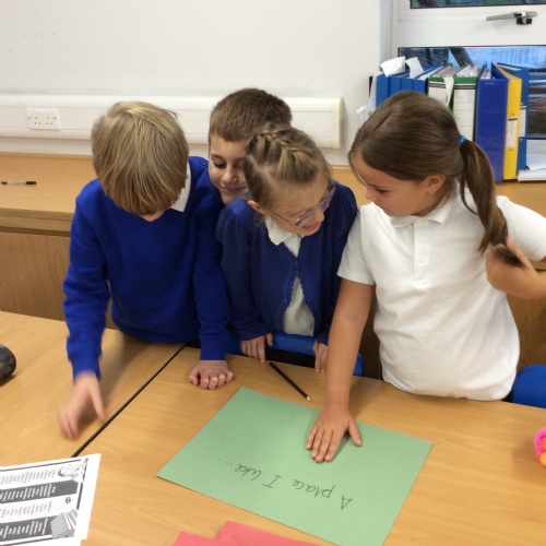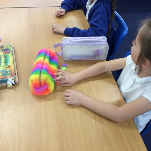The Children took part in an NRICH Rich Task for their Maths this week. Pupils had to use counters and make a design, and the rest of their team had to use their maths questioning skills to work to together and try to replicate the same order and number of counters that the designers had. The children really enjoyed working out the right questions to ask to help them figure out the sequence!