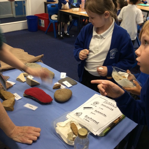 In Science this week, Year 3 children welcomed Rock Specialist, Mrs West, to our classroom. The children enjoyed learning more about different types of rocks and fossils. They took time to handle and identify rocks, and draw and label fossils. They asked lots of questions to our visiting scientist!