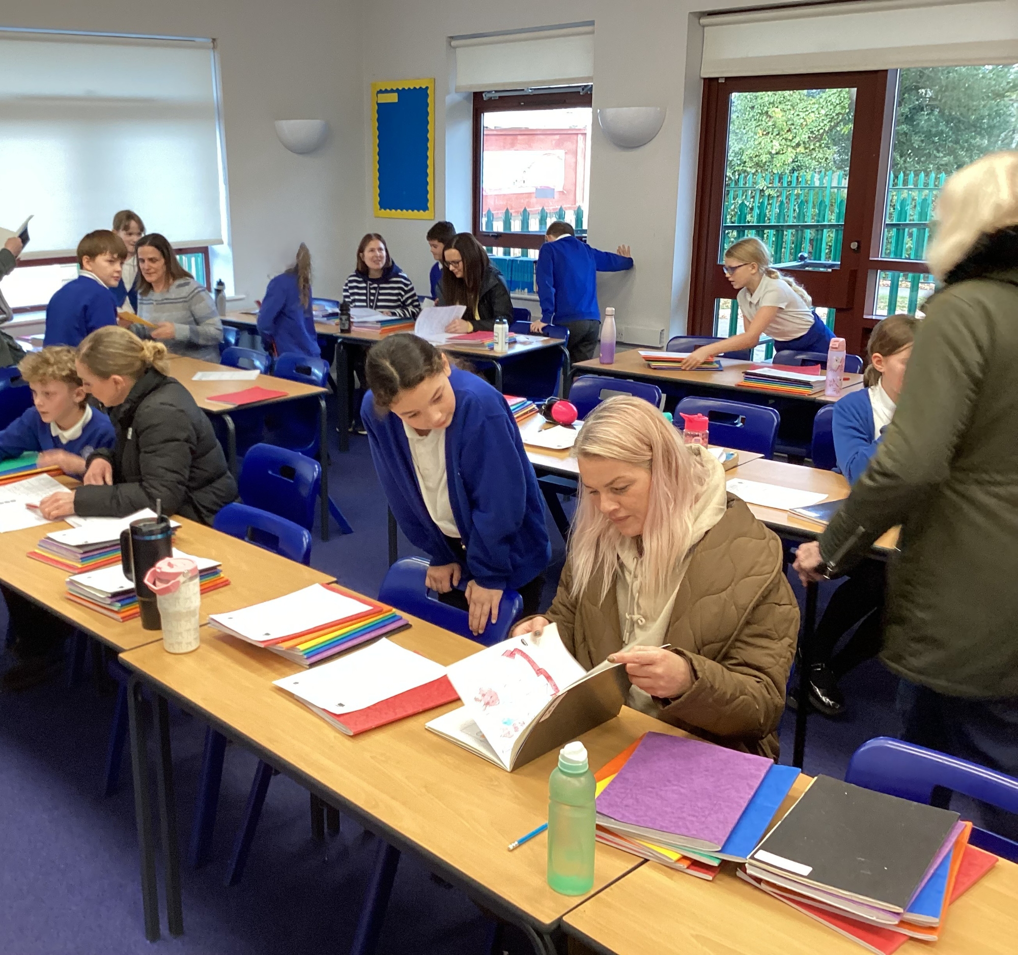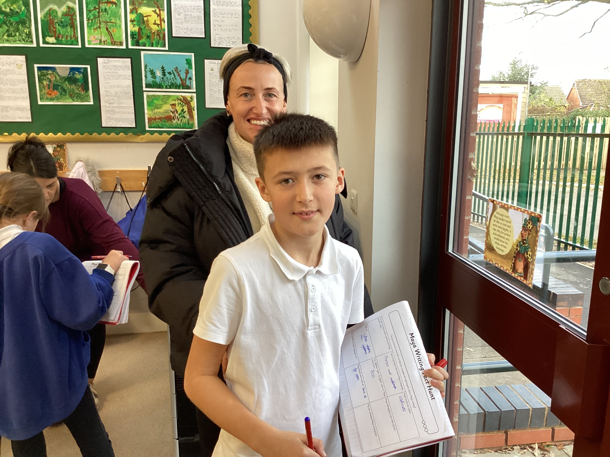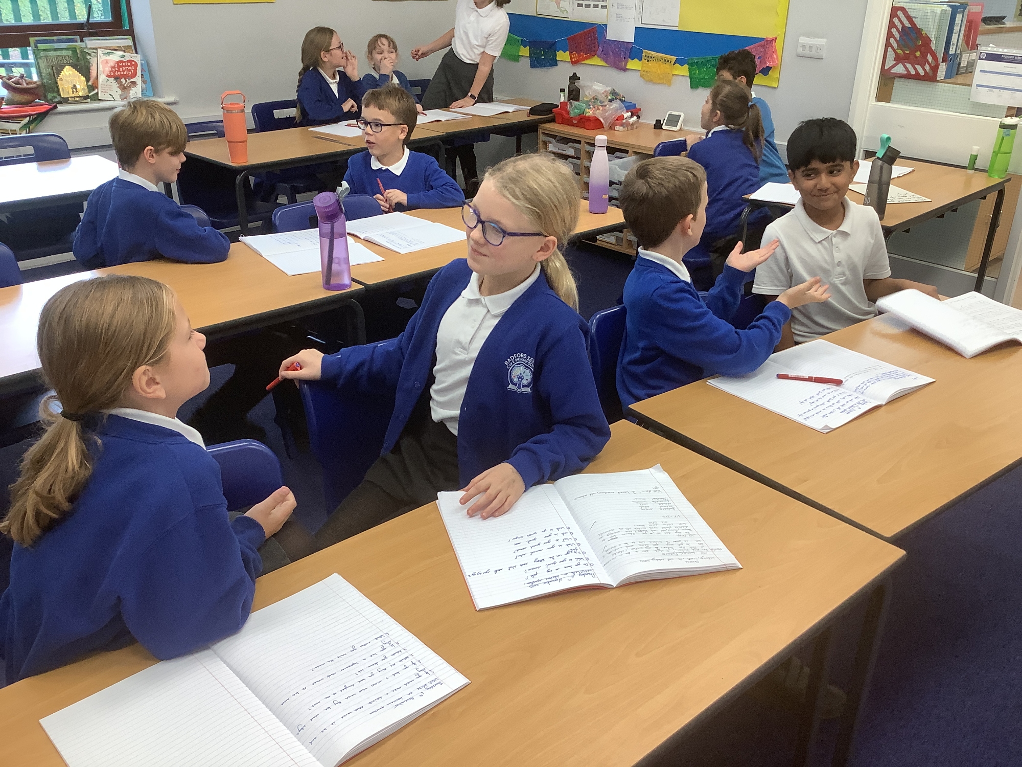 Year 5 invited parents and carers to share some of their learning. They performed two songs from their upcoming Young Voices concert and presented their learning about the Maya civilisation. They then completed a 'fact hunt' to learn more about Maya writing before sharing their books.
