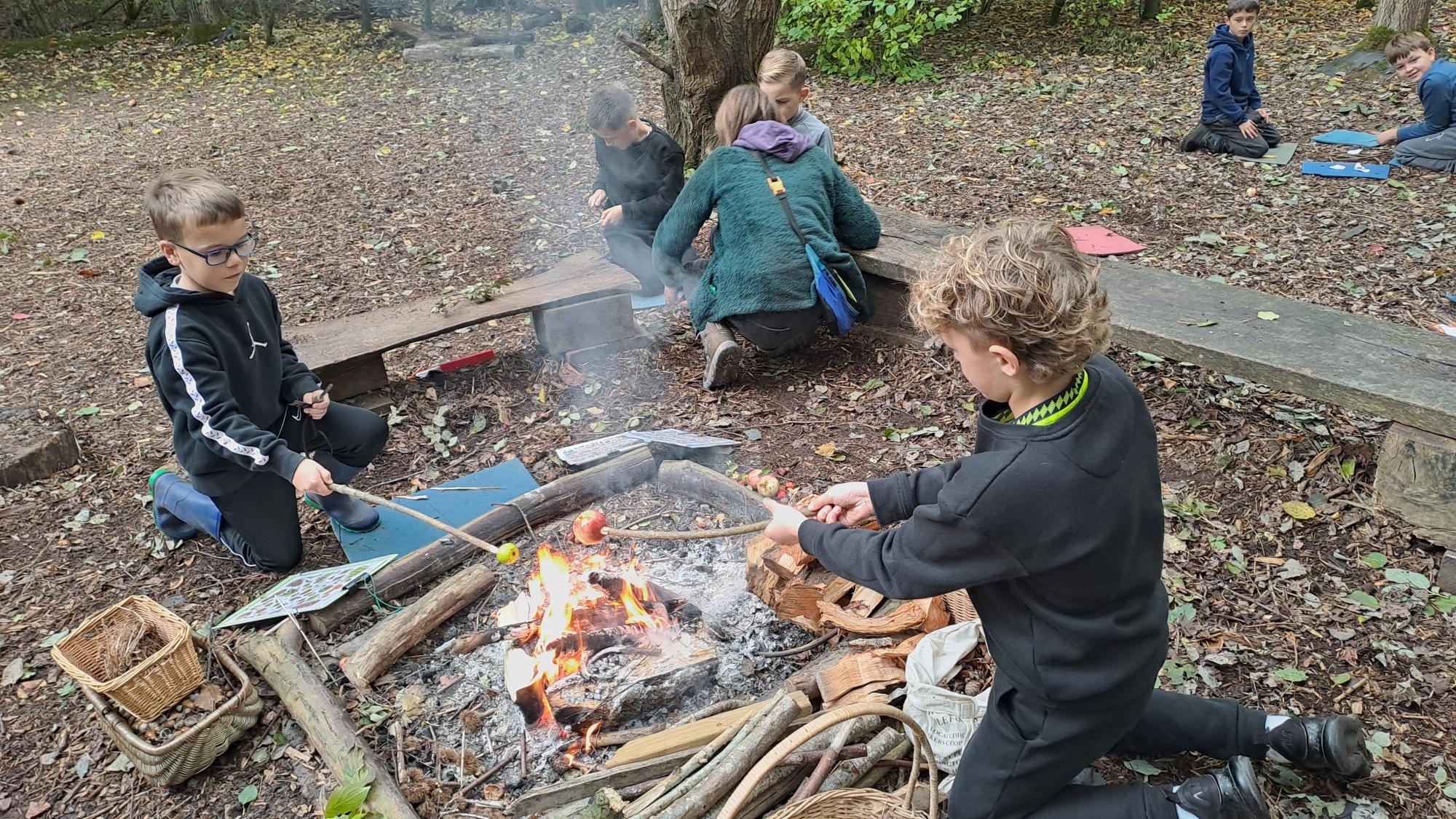 We had a fantastic day at in Tallis Wood learning about the Children's Fire and the rewilding project. We played games and practised out fire lighting skills before heading to the Children's Forest for a spot of poetry writing and of course, a game of the famous 'Sink and Fade'! The children used charcoal from the fire to make themselves camouflaged