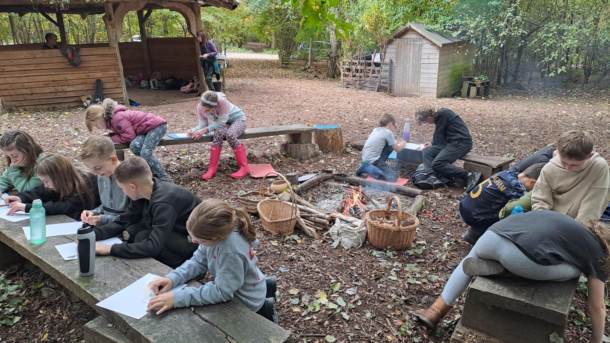 Half of Y5 had a fantastic day at the Children's Forest. They listened to Aggie explain all about the purpose and origin of the forest and the 'Children's Fire'. Games, fire lighting and den building took up the morning in the woods, while the afternoon was spent playing 'Sink and Fade', enjoying the huge swing and drawing the trees.