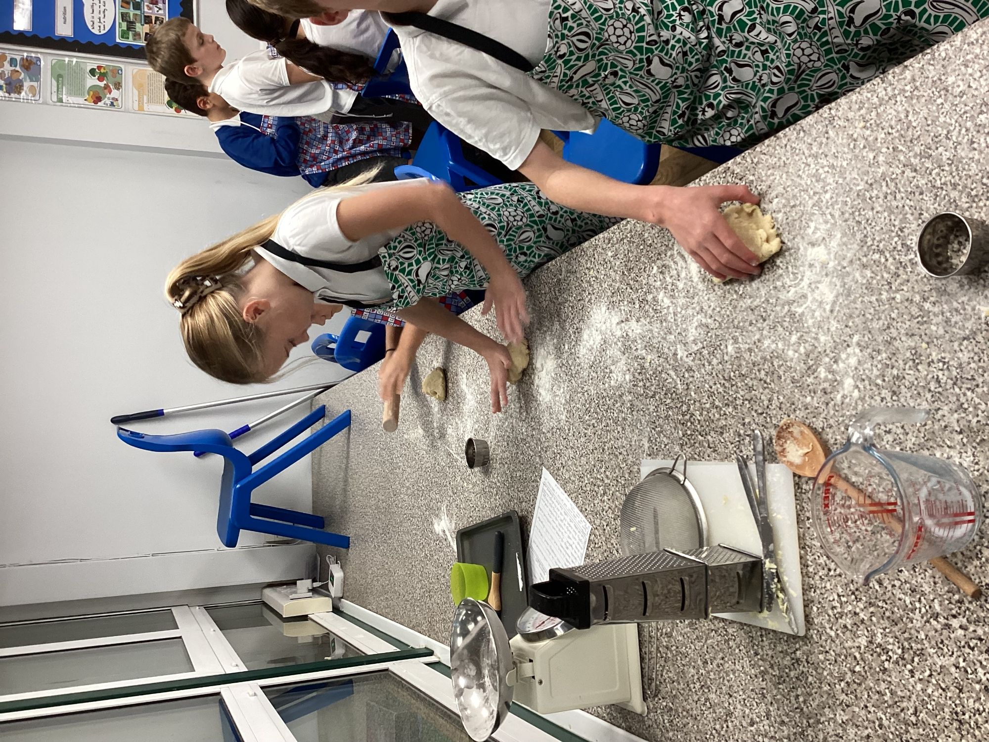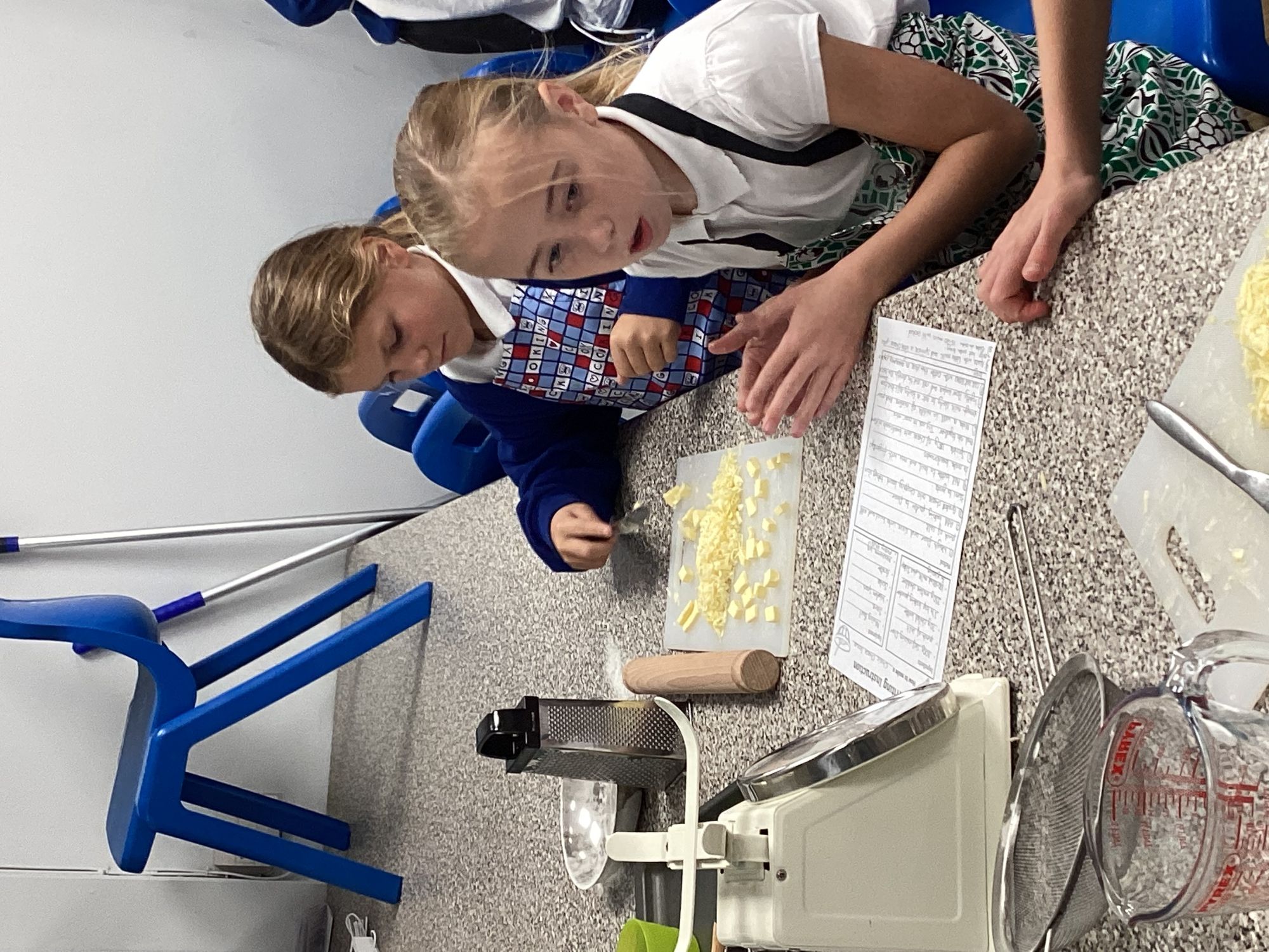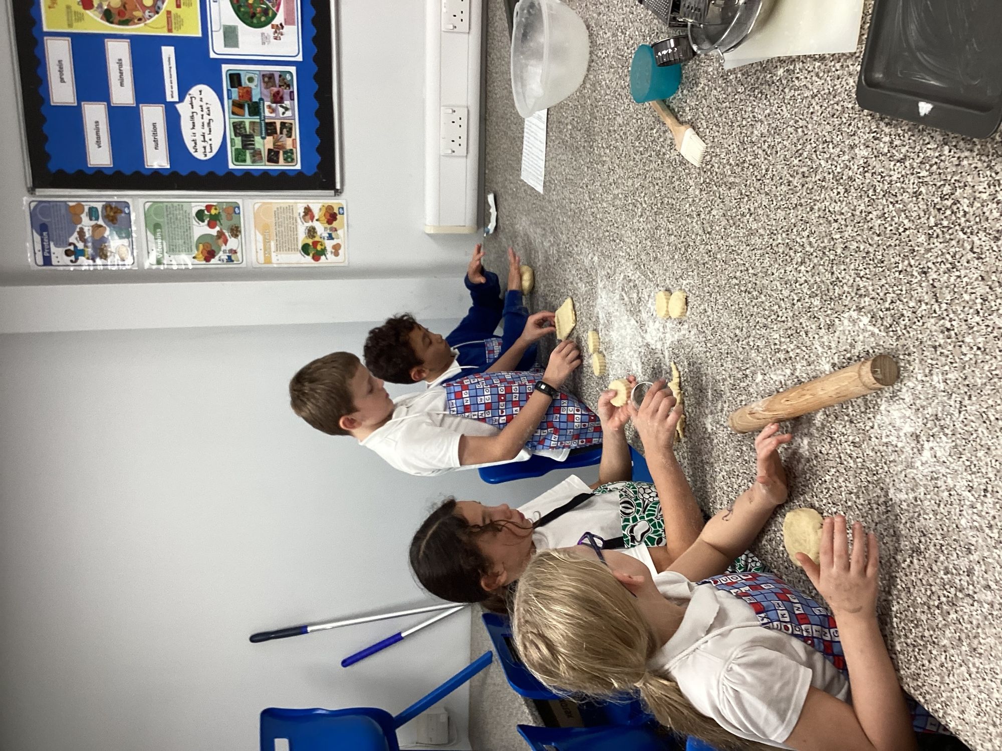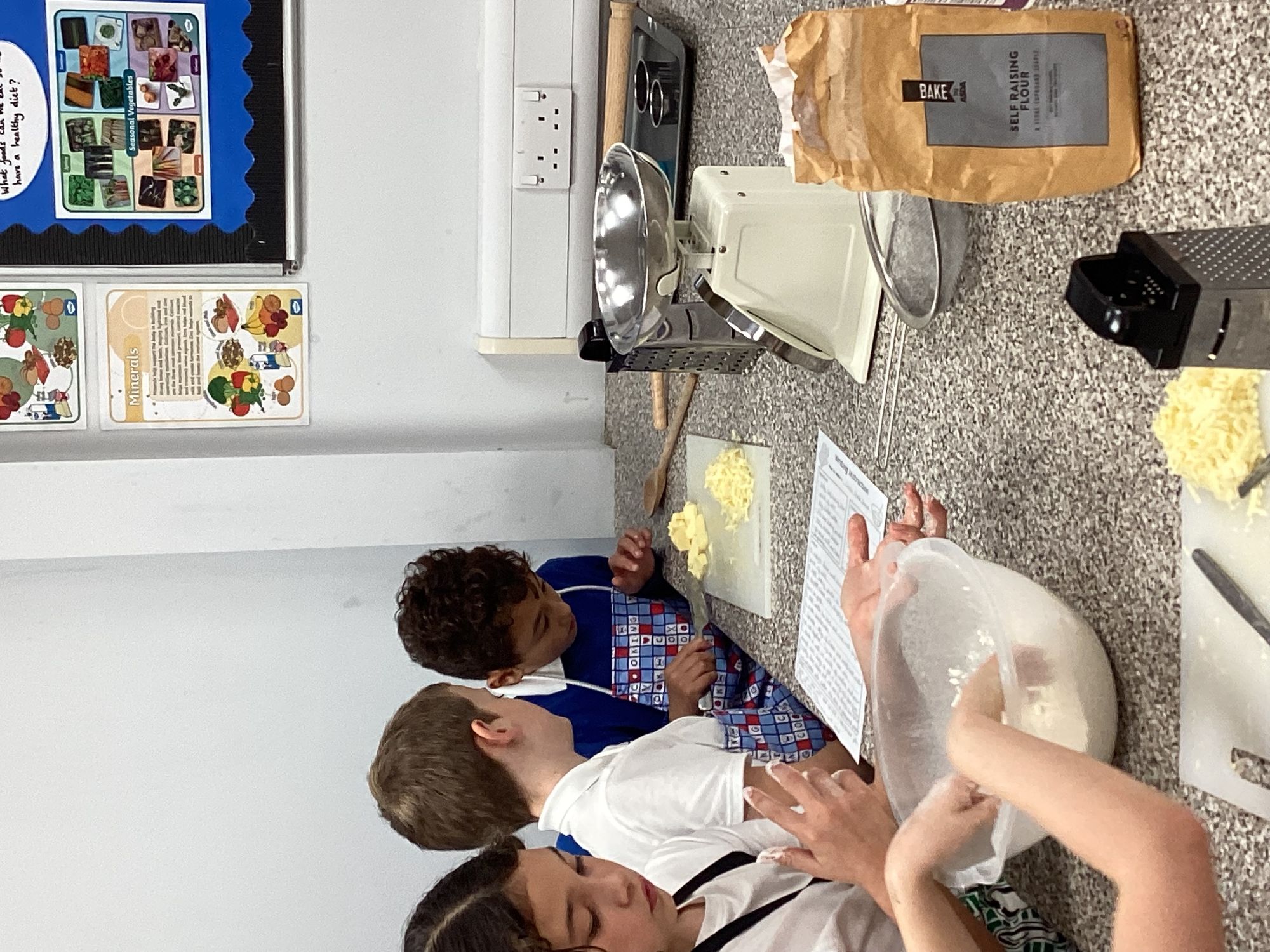 Children used sieving and kneading skills to make cheese scones. Yum!