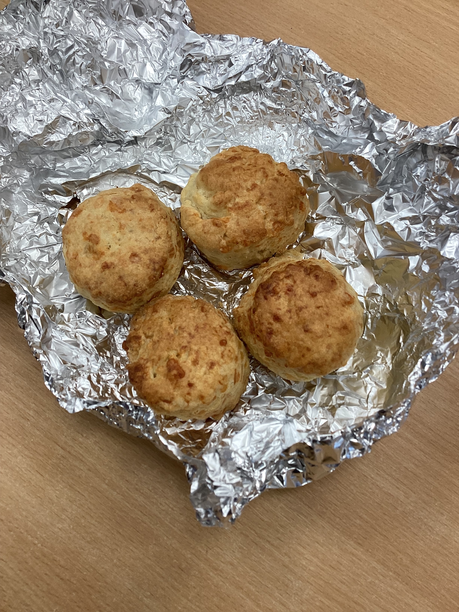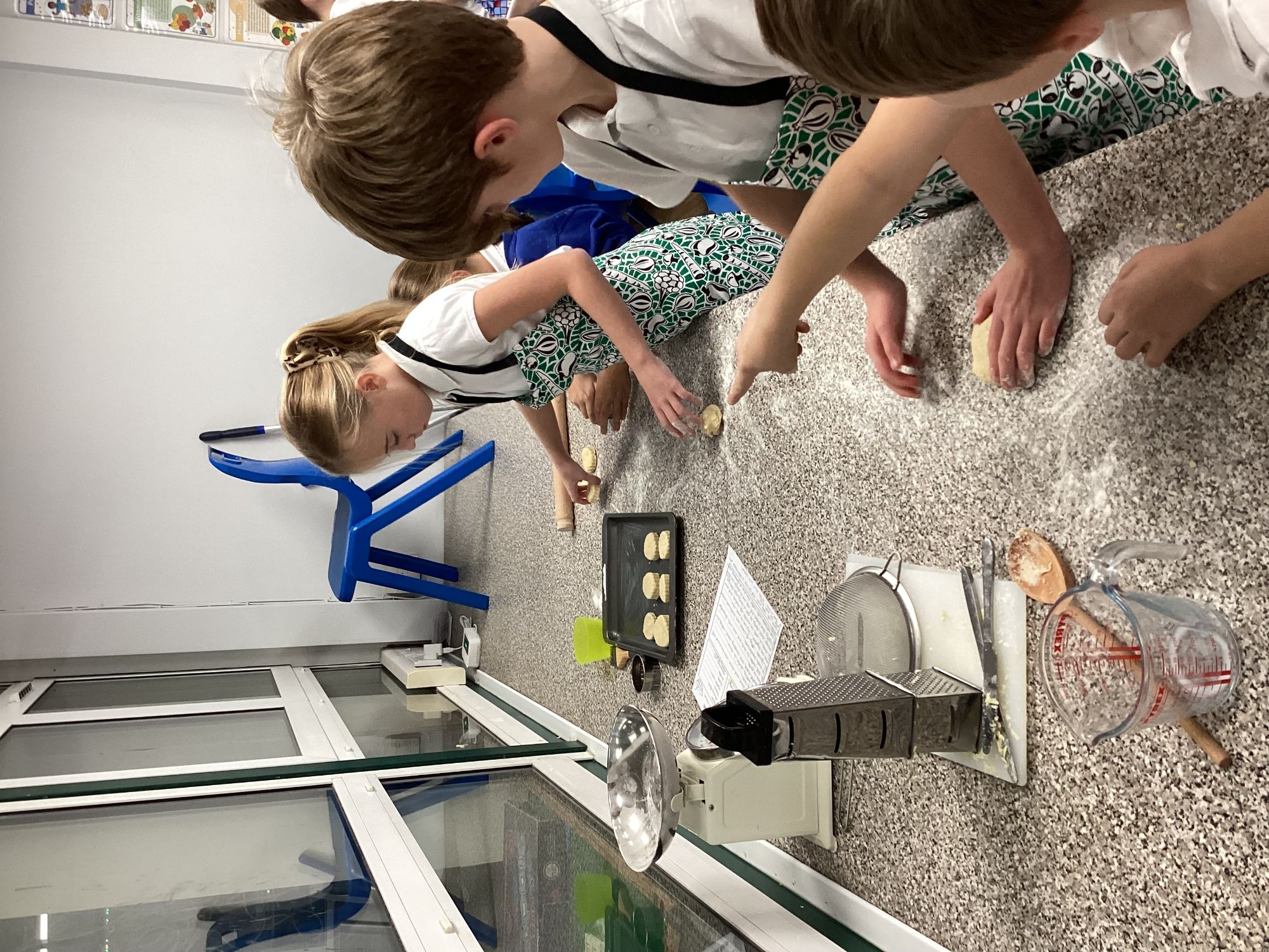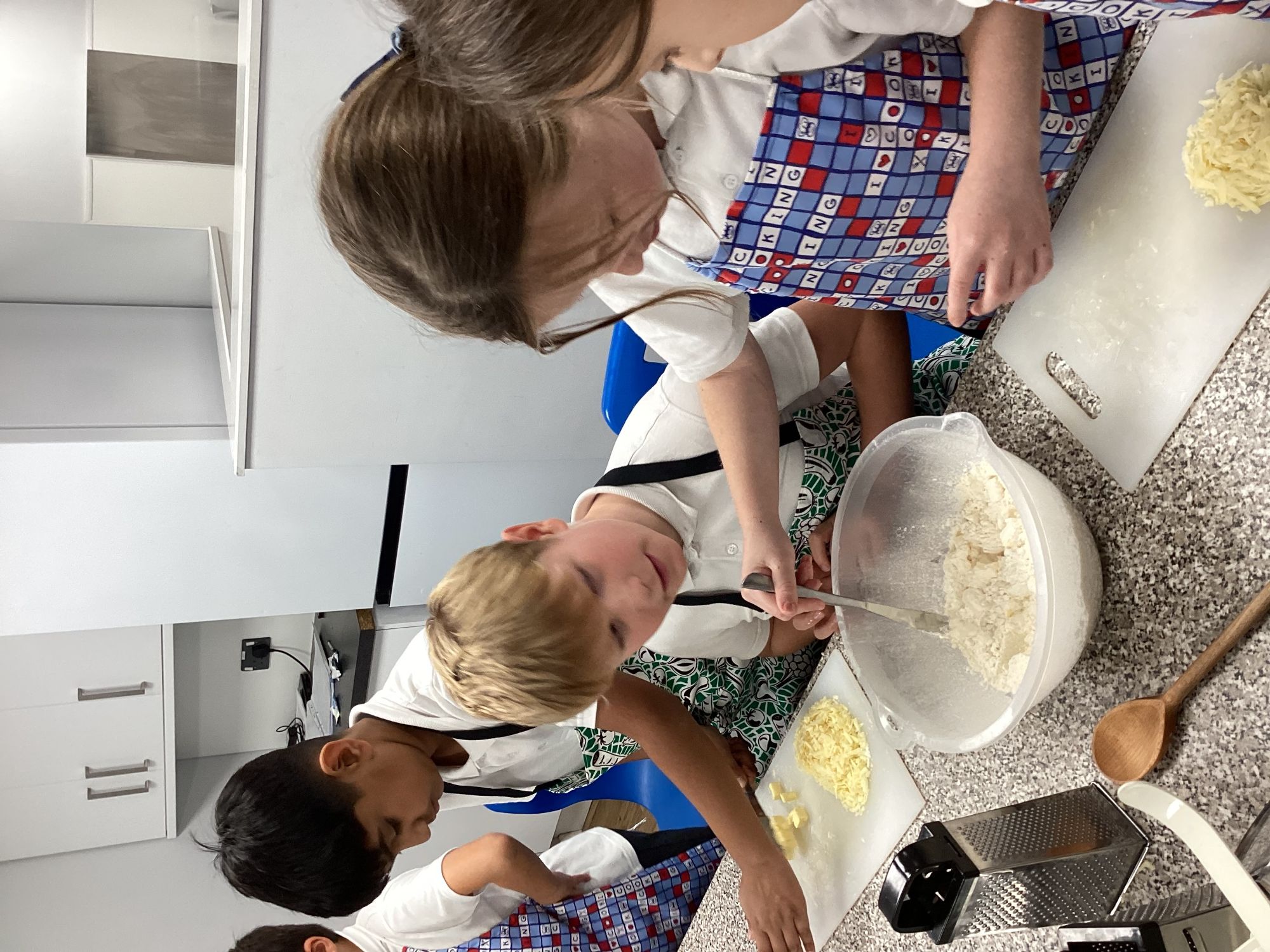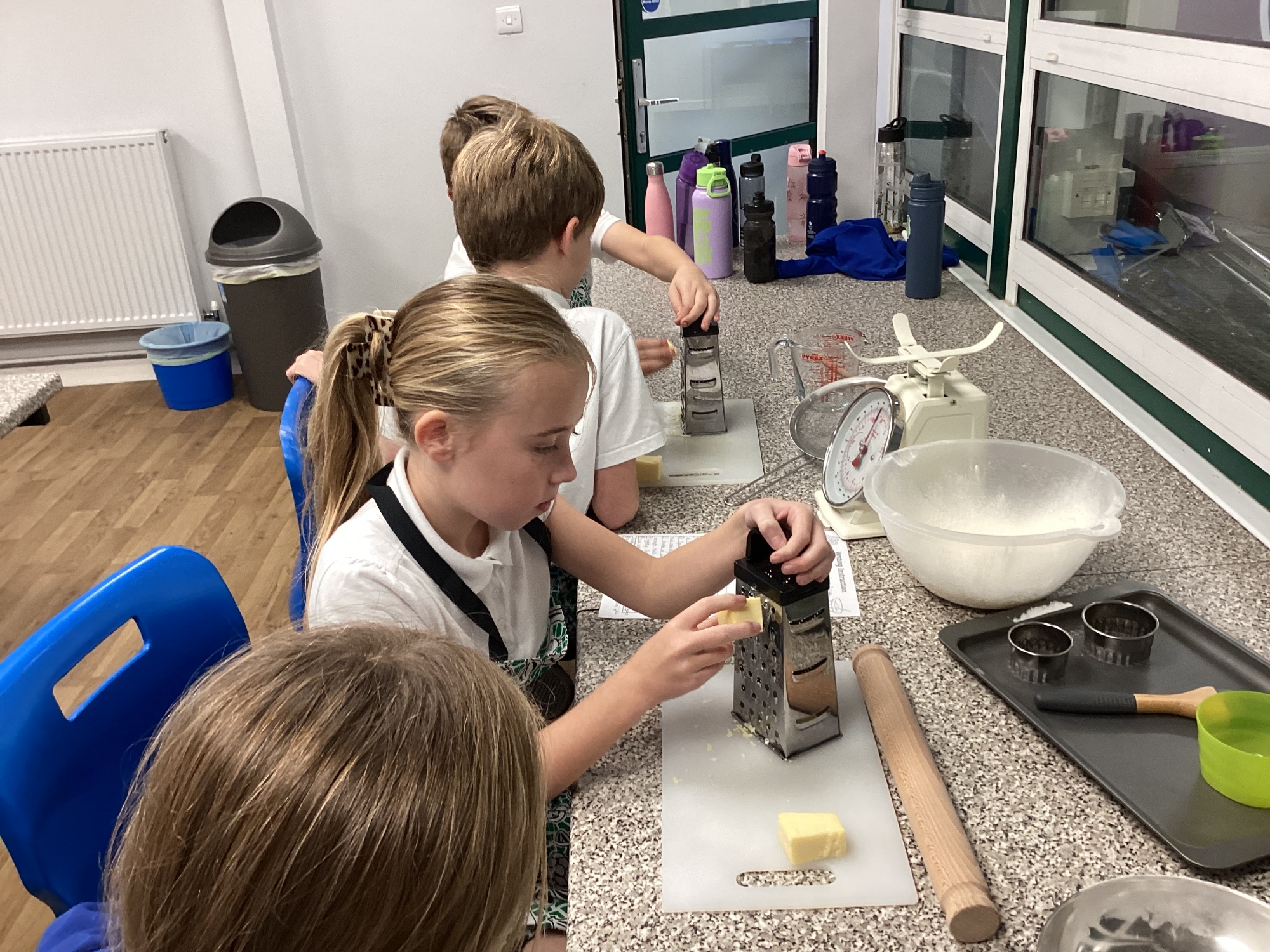 Children used sieving and kneading skills to make cheese scones. Yum!