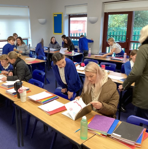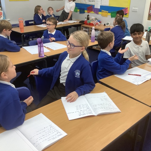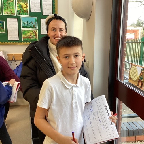 Year 5 invited parents and carers to share some of their learning. They performed two songs from their upcoming Young Voices concert and presented their learning about the Maya civilisation. They then completed a 'fact hunt' to learn more about Maya writing before sharing their books.