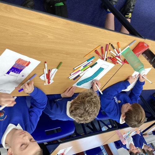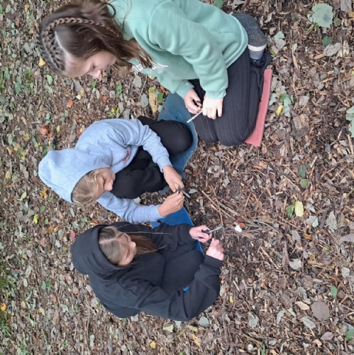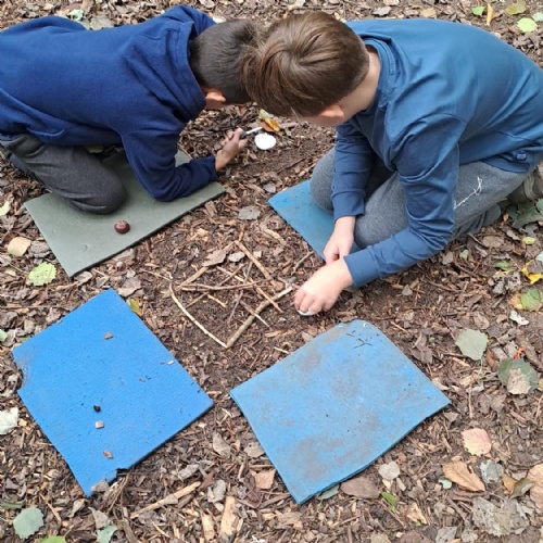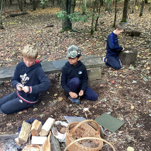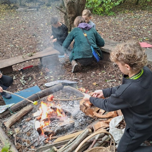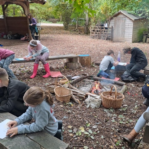 Half of Y5 had a fantastic day at the Children's Forest. They listened to Aggie explain all about the purpose and origin of the forest and the 'Children's Fire'. Games, fire lighting and den building took up the morning in the woods, while the afternoon was spent playing 'Sink and Fade', enjoying the huge swing and drawing the trees.