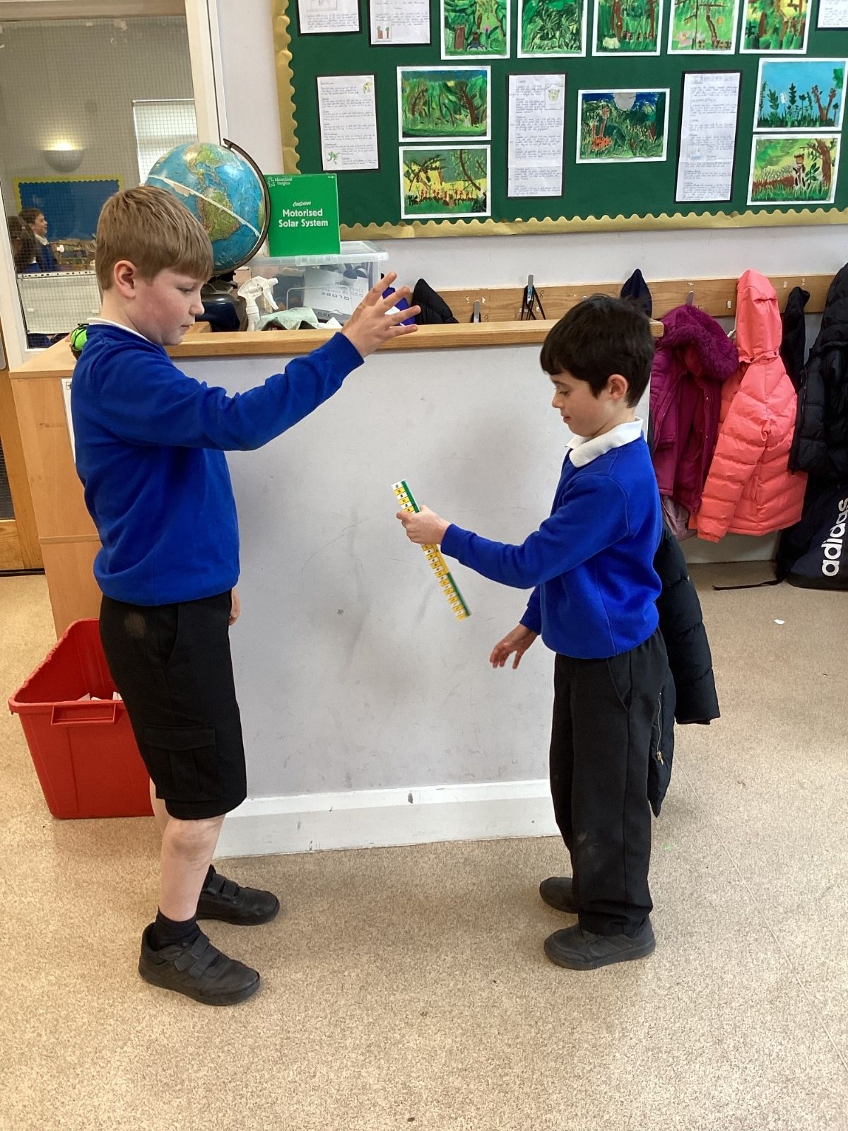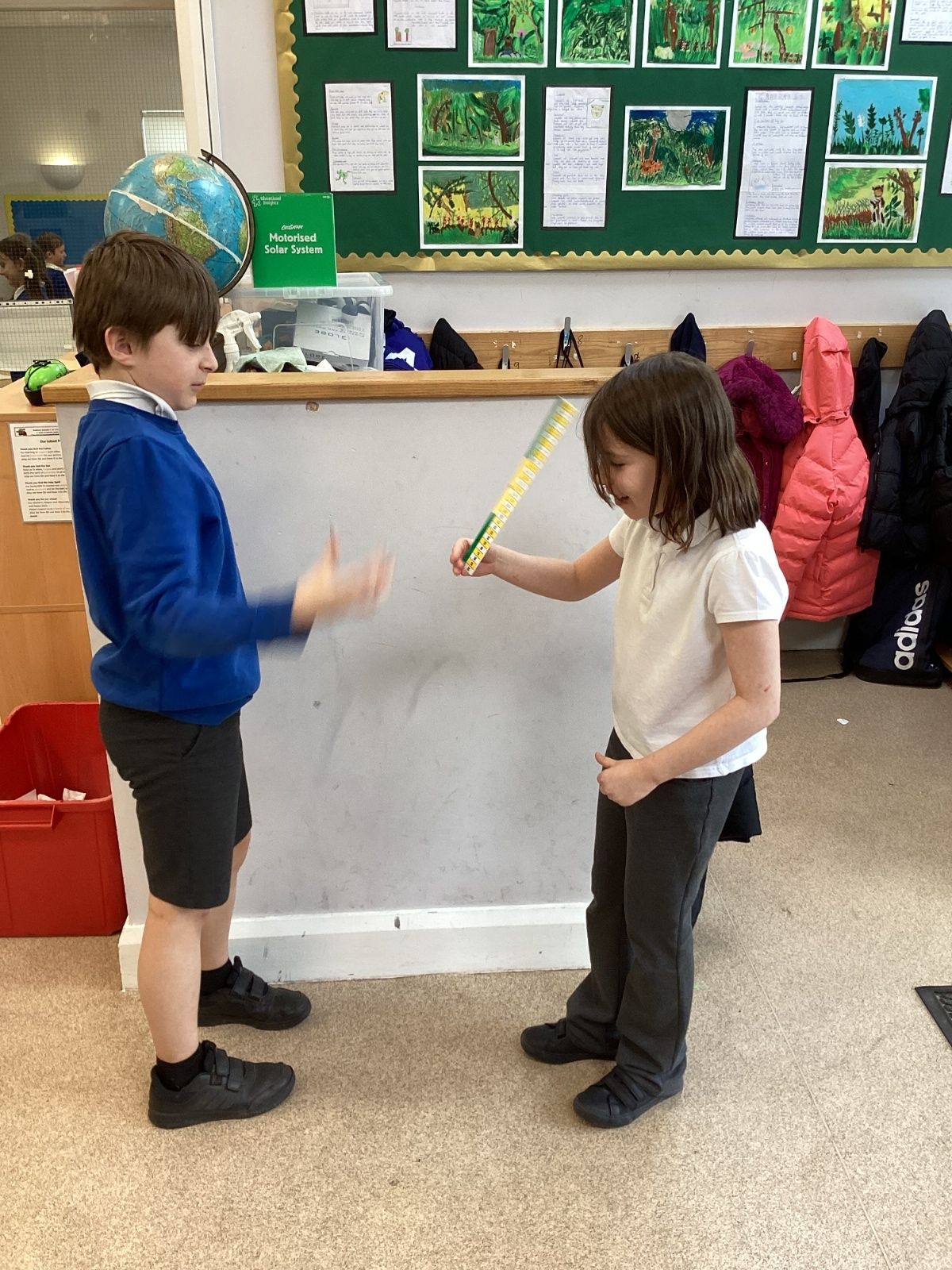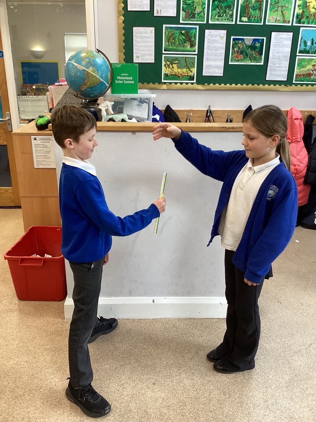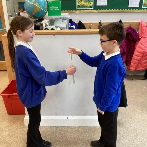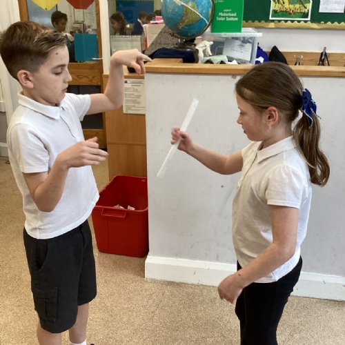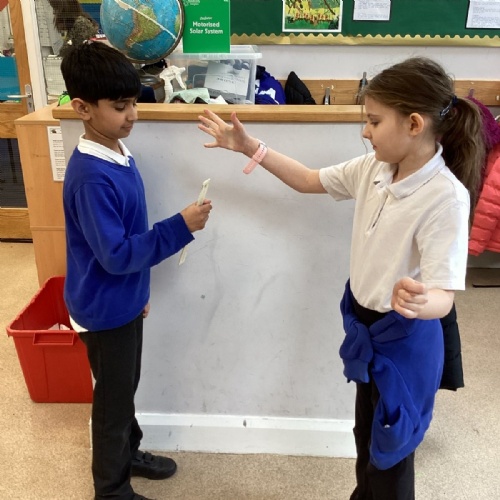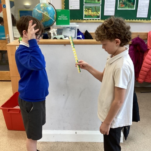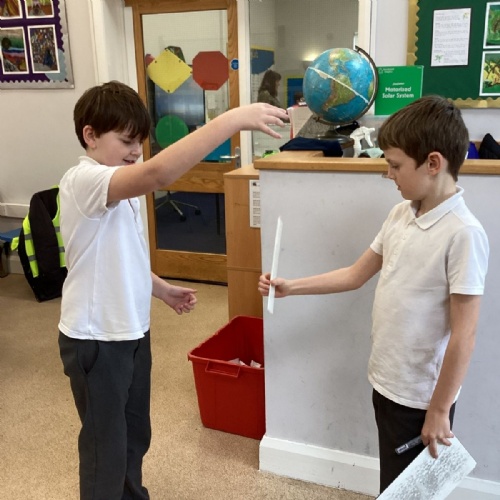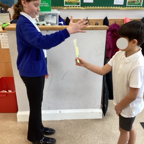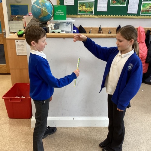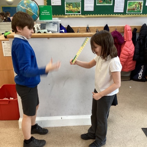The theme for Science Week is ‘curiosity’, so we were curious about whether younger people have quicker reactions. Year 5 carried out the ruler drop test to measure reaction times and compared our results to Year 1. We found out that we had quicker reaction times than Year 1. Our results showed that younger people do not have quicker reactions.