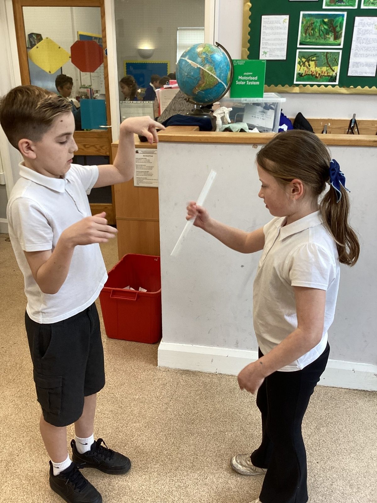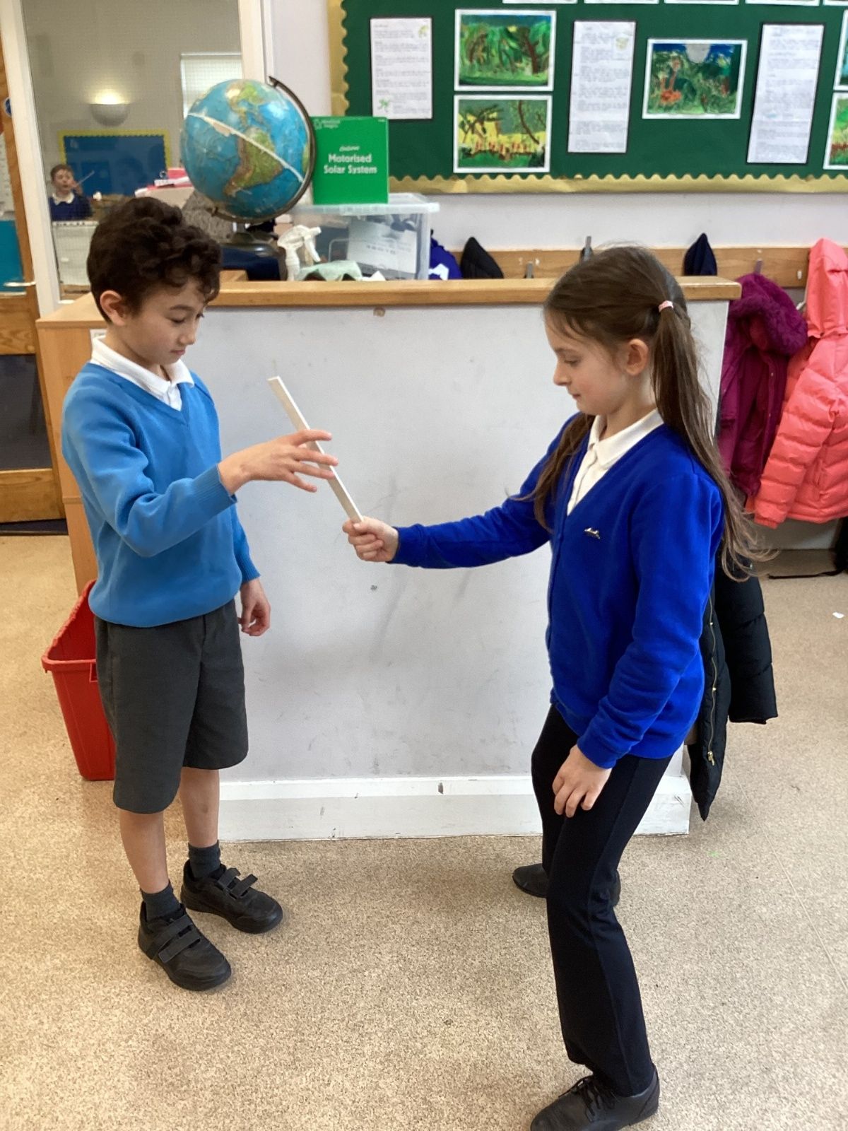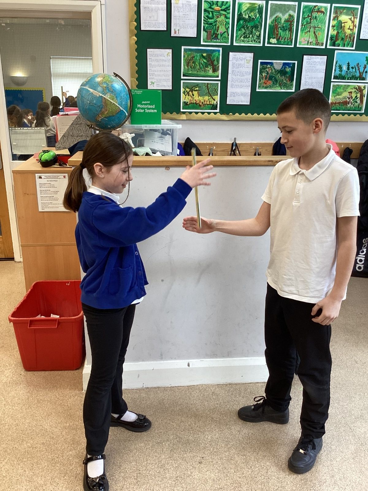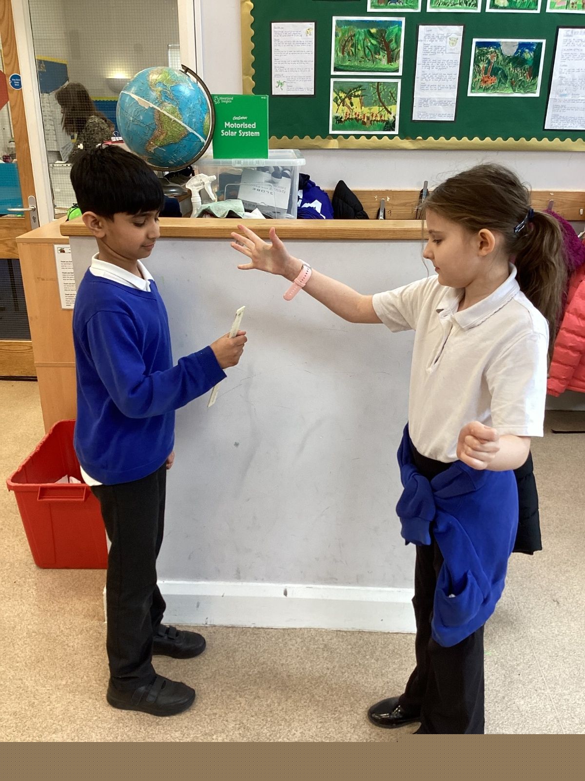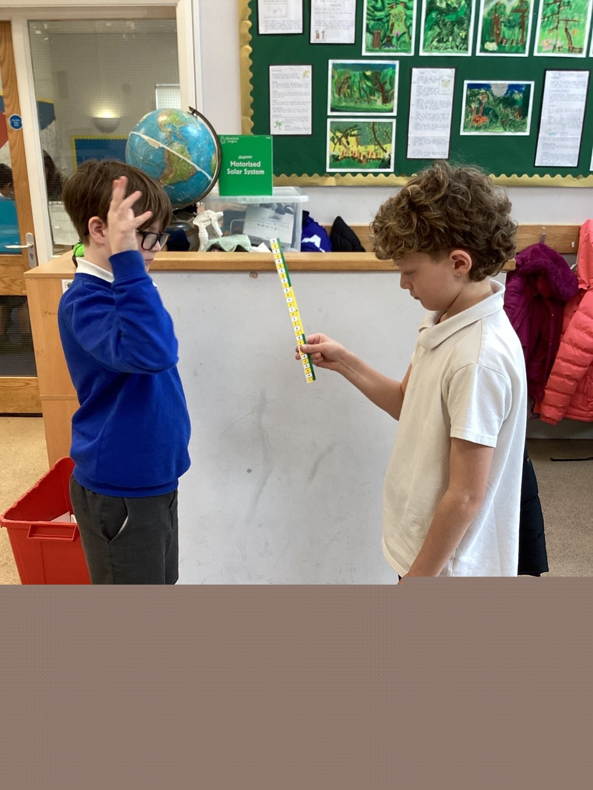 The theme for Science Week is ‘curiosity’, so we were curious about whether younger people have quicker reactions. Year 5 carried out the ruler drop test to measure reaction times and compared our results to Year 1. We found out that we had quicker reaction times than Year 1. Our results showed that younger people do not have quicker reactions.