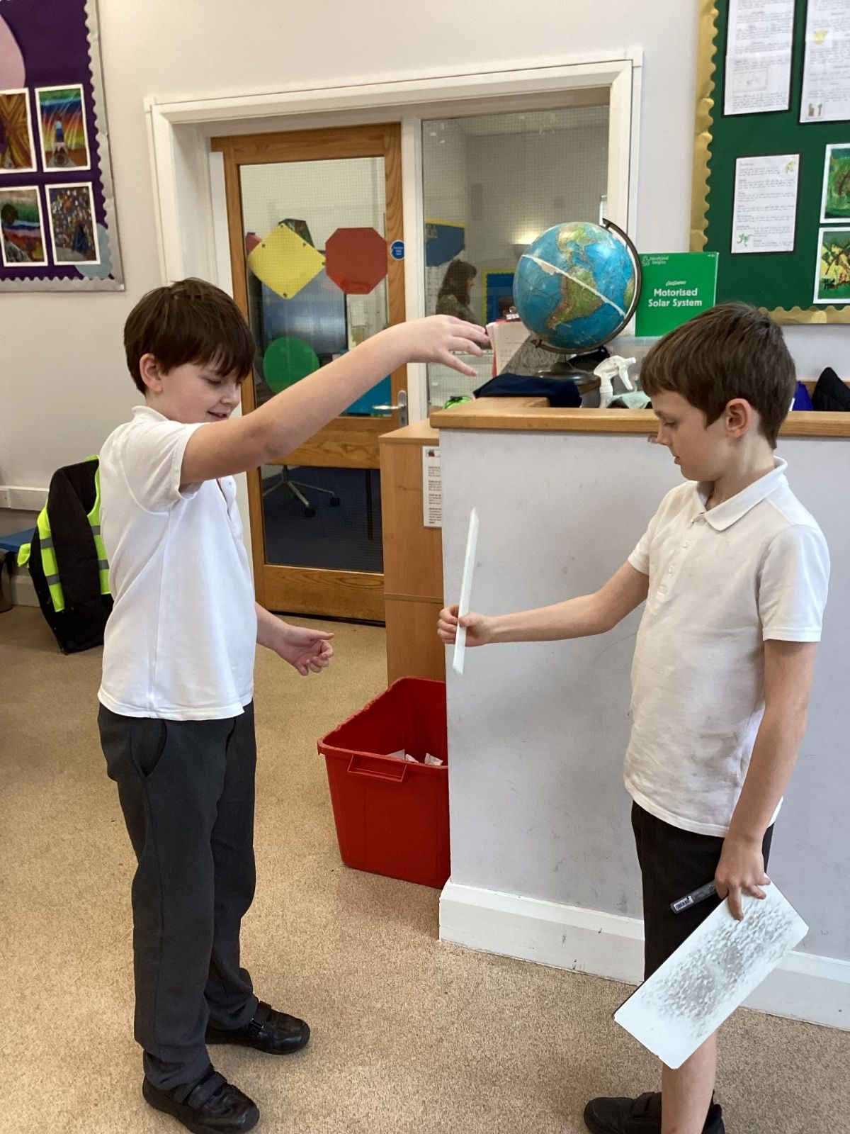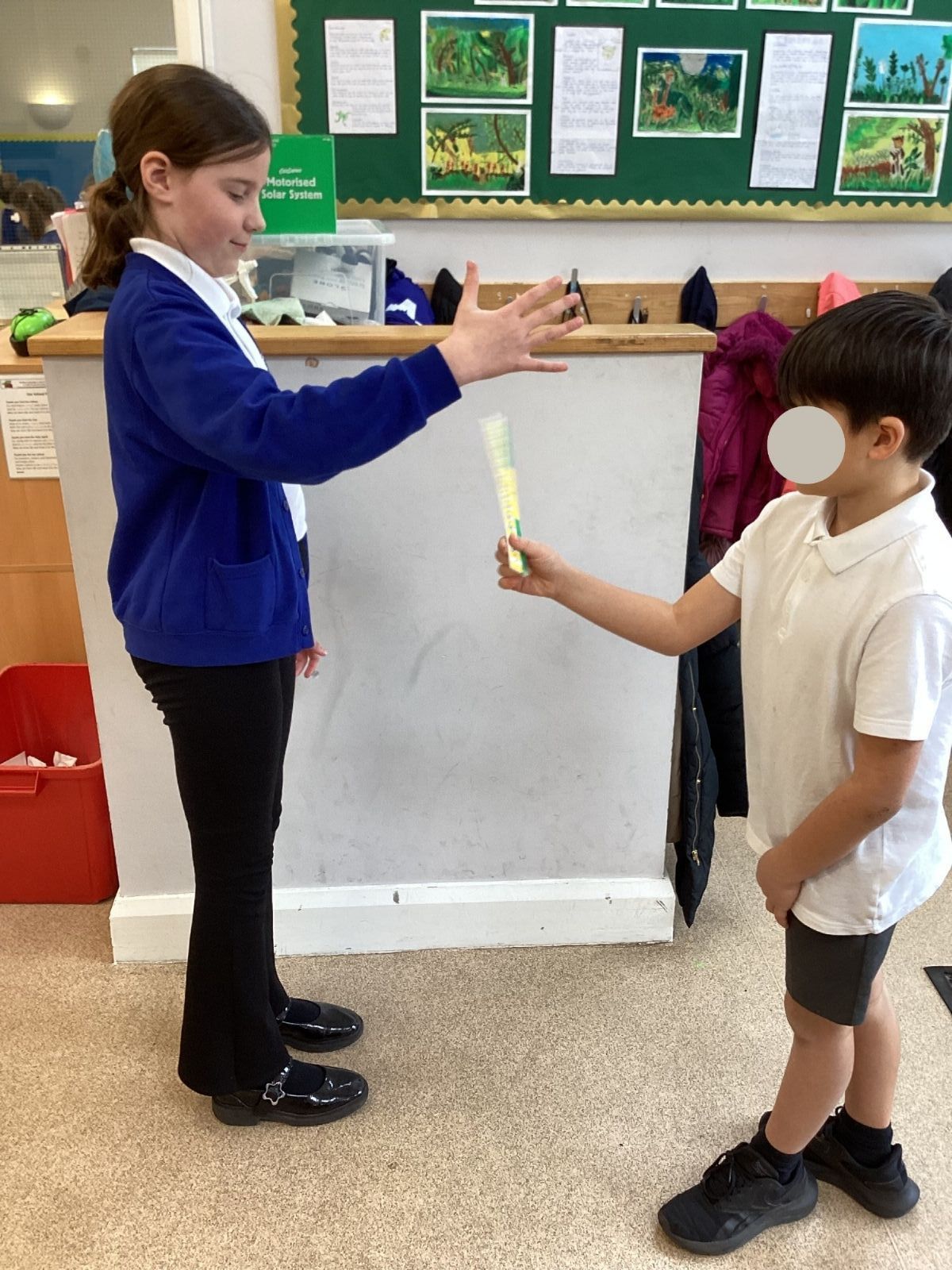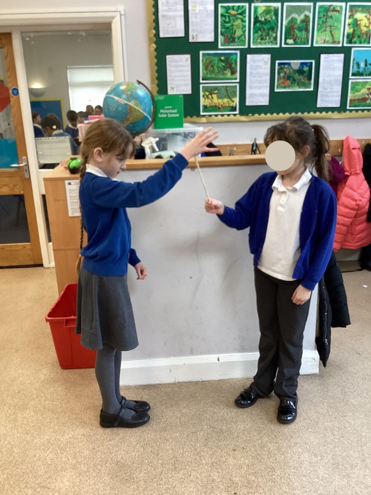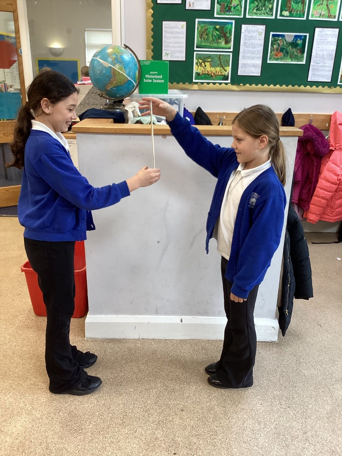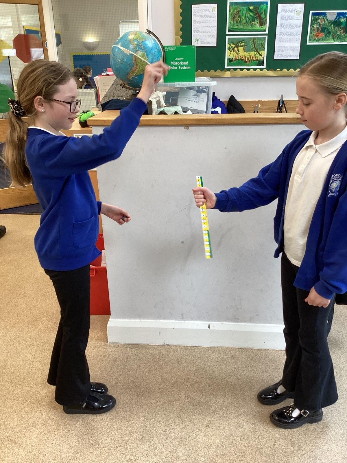 The theme for Science Week is ‘curiosity’, so we were curious about whether younger people have quicker reactions. Year 5 carried out the ruler drop test to measure reaction times and compared our results to Year 1. We found out that we had quicker reaction times than Year 1. Our results showed that younger people do not have quicker reactions.