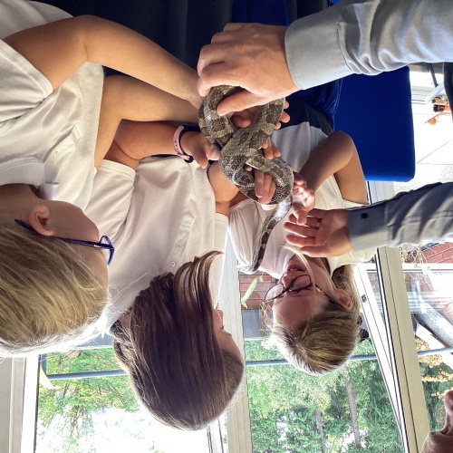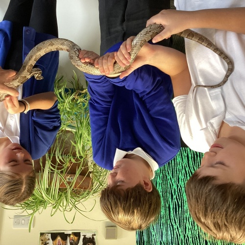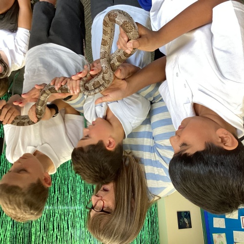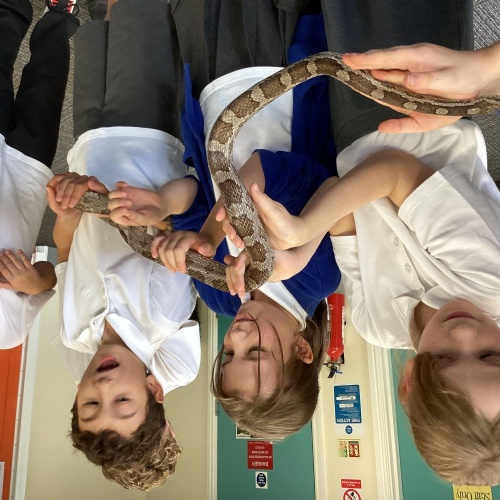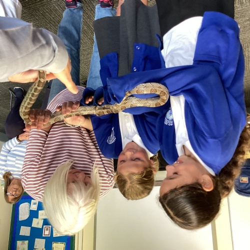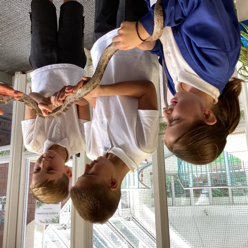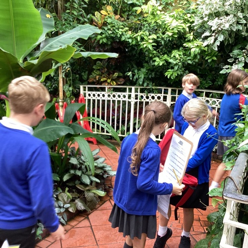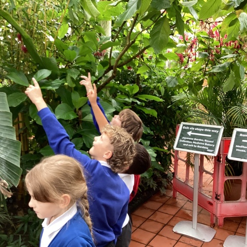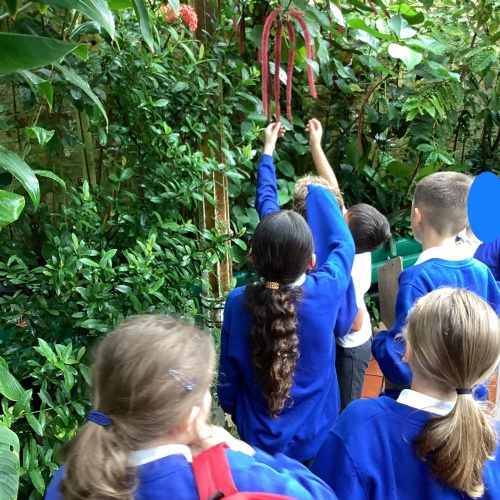Year 5 had a great time at The Botanical Gardens in Birmingham as part of their theme learning about the rainforest. They had a 'Rainforest Challenge' where children hunted for plants to match the clues and a 'Rainforest Fun' session where they found out about the animals of the rainforest. The children listened brilliantly and asked some fantastic questions. Children had the opportunity to touch or hold stick insects, a giant snail, bearded dragon and a snake! Even those that were a little nervous challenged themselves. Well done year 5!