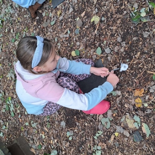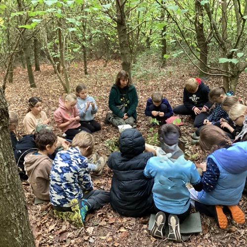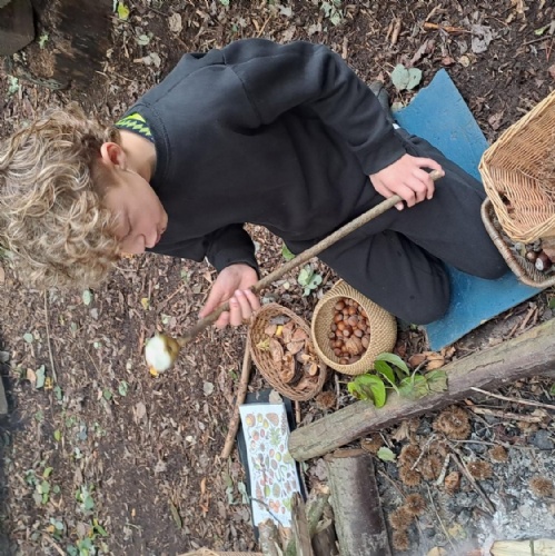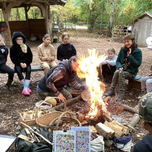 We had a fantastic day at in Tallis Wood learning about the Children's Fire and the rewilding project. We played games and practised out fire lighting skills before heading to the Children's Forest for a spot of poetry writing and of course, a game of the famous 'Sink and Fade'! The children used charcoal from the fire to make themselves camouflaged