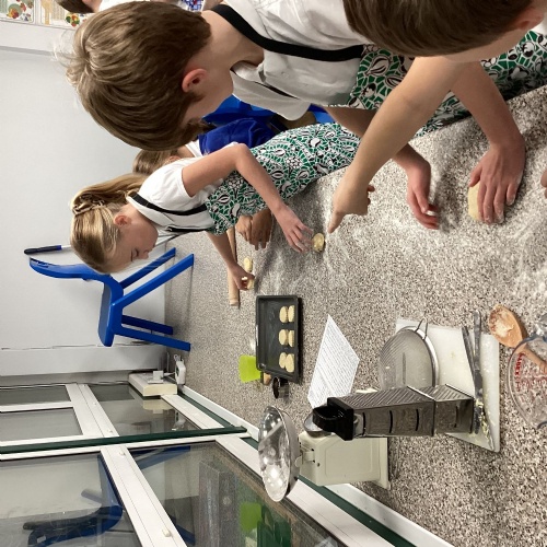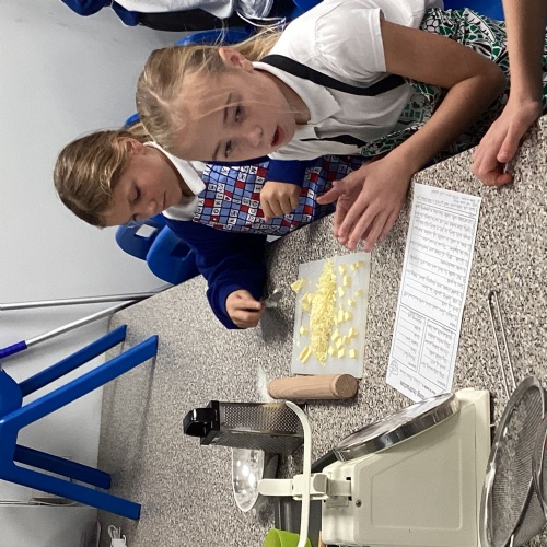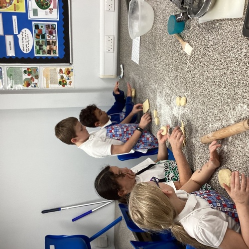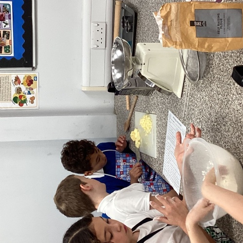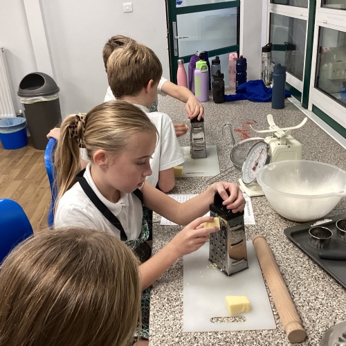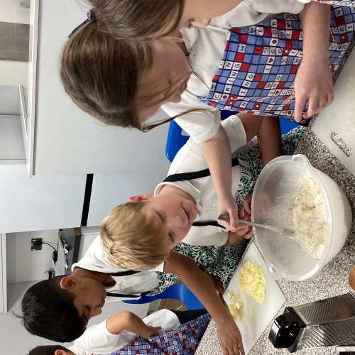 Children used sieving and kneading skills to make cheese scones. Yum!