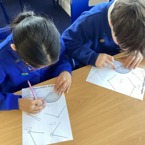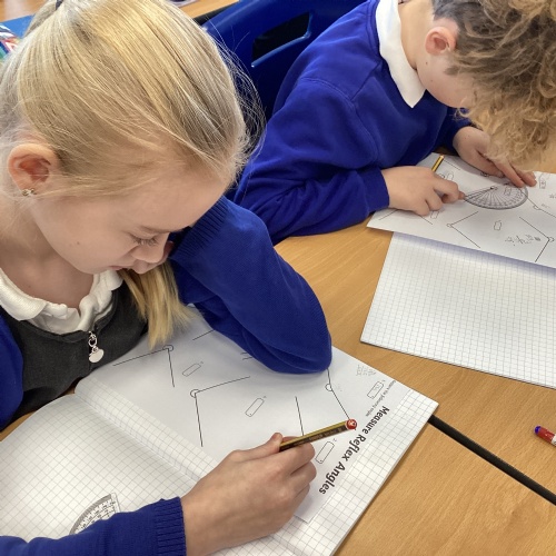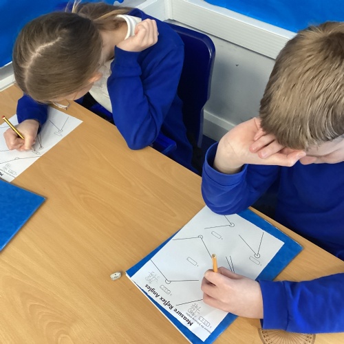 Year 6 have been working hard in their Maths lessons this week. They have been measuring and drawing angles, calculating missing angles on a straight line and exploring angles in triangles and quadrilaterals.
